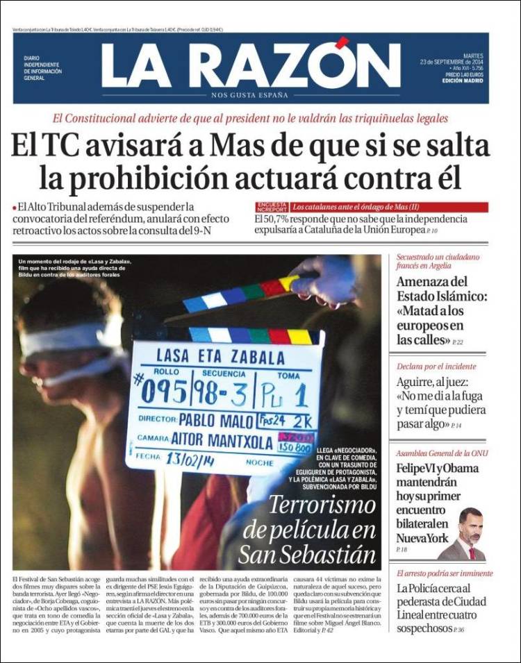 Portadas de los diarios El Mundo, El País, ABC, La Razón, La Vanguardia, El Periódico, Cinco Días, El Economista, Expansión, Marca, As, Mundo Deportivo y Sport.