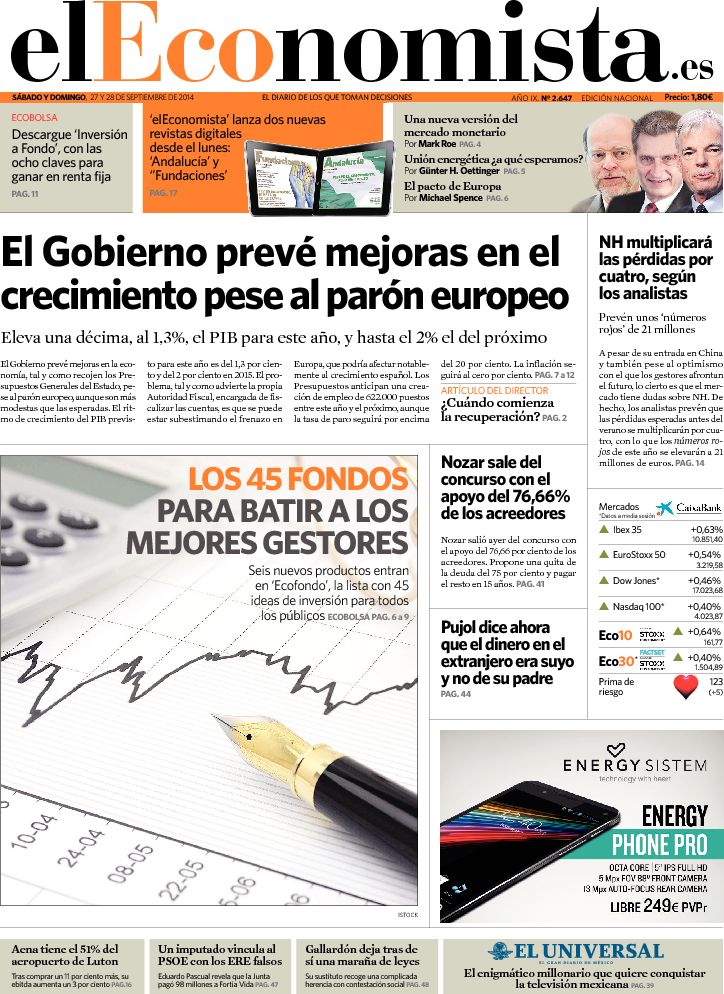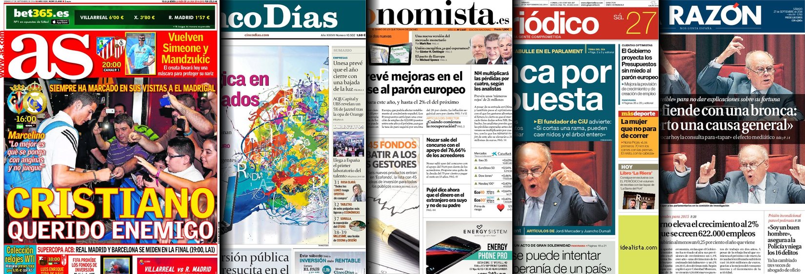 Portadas de los diarios ABC, La Razón, As, Cinco Días, El Periódico, El Economista y La Vanguardia.