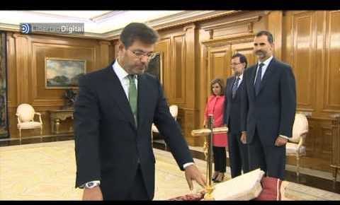 El nuevo ministro de Justicia, Rafael Catalá, ha jurado esta mañana su cargo ante el Rey en el Palacio de la Zarzuela en presencia del presidente del Gobierno, Mariano Rajoy, en una breve ceremonia en la que la vicepresidenta Soraya Sáenz de Santamaría ha ejercido como notario mayor del Reino.