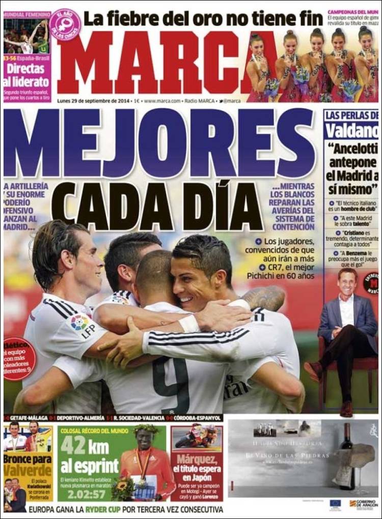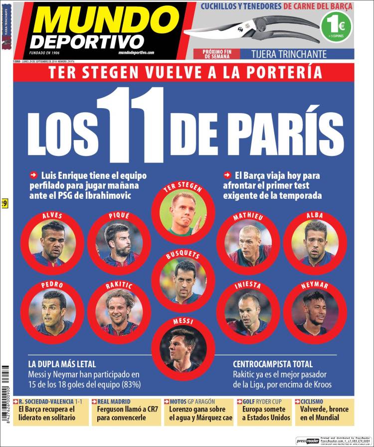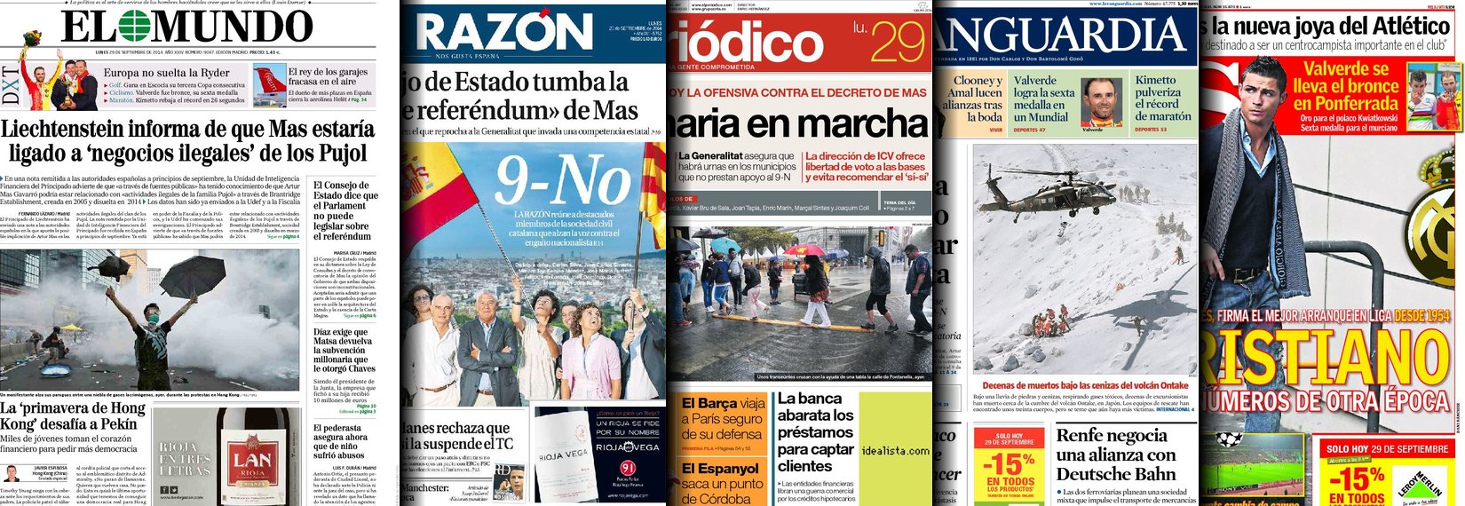 Portadas de los diarios El Mundo, El País, ABC, La Razón, La Vanguardia, El Periódico, Cinco Días, El Economista, Expansión, Marca, As, Mundo Deportivo y Sport.