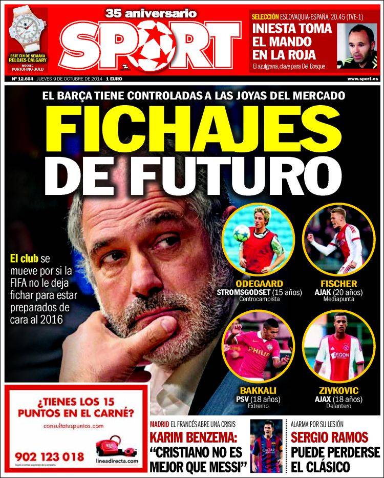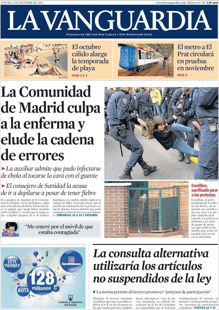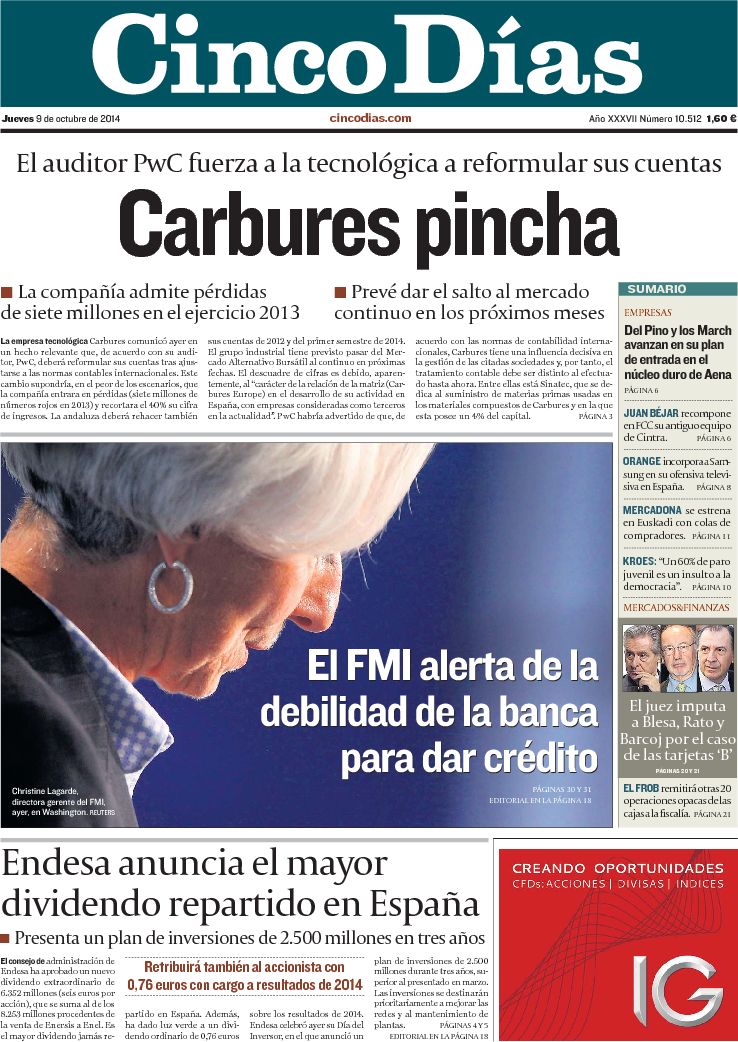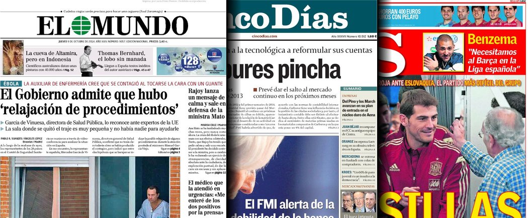 Portadas de los diarios El Mundo, El País, ABC, La Razón, La Vanguardia, El Periódico, Cinco Días, El Economista, Expansión, Marca, As, Mundo Deportivo y Sport.