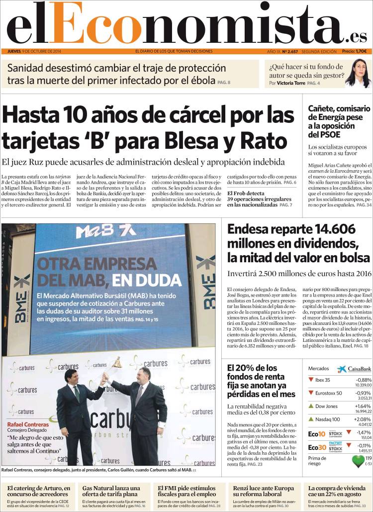 "Hasta 10 años de cárcel por las tarjetas 'B' para Blesa y Rato"