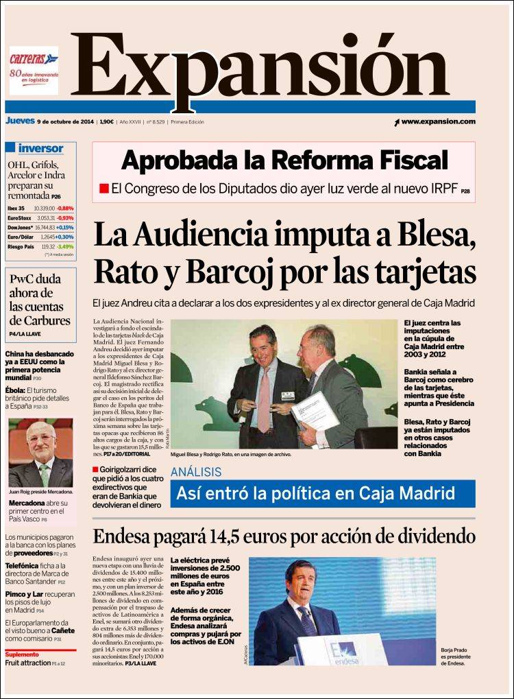 "La Audiencia imputa a Blesa, Rato y Barcoj por las tarjetas"