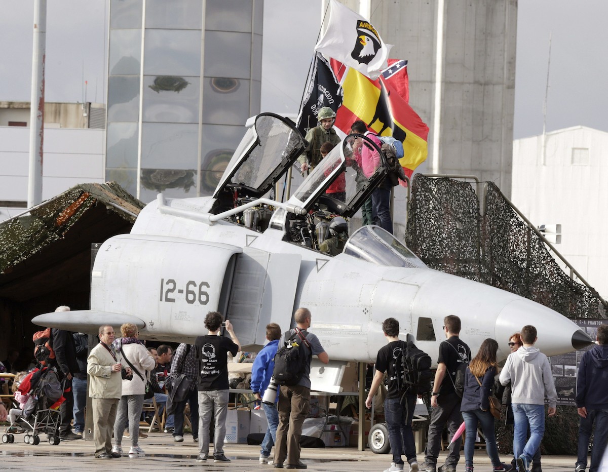 Varios asistentes visitan la cabina de un avión Phanton que prestó servicio en el Ejército del Aire.