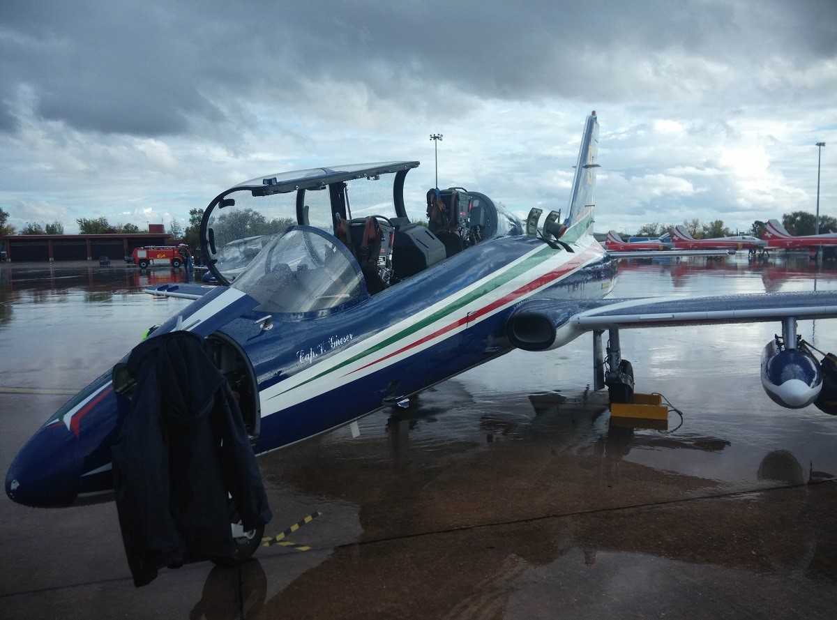 Uno de los Aeromacchi MB-339 utilizado por la patrulla acrocática Frecce Tricolori de Italia.