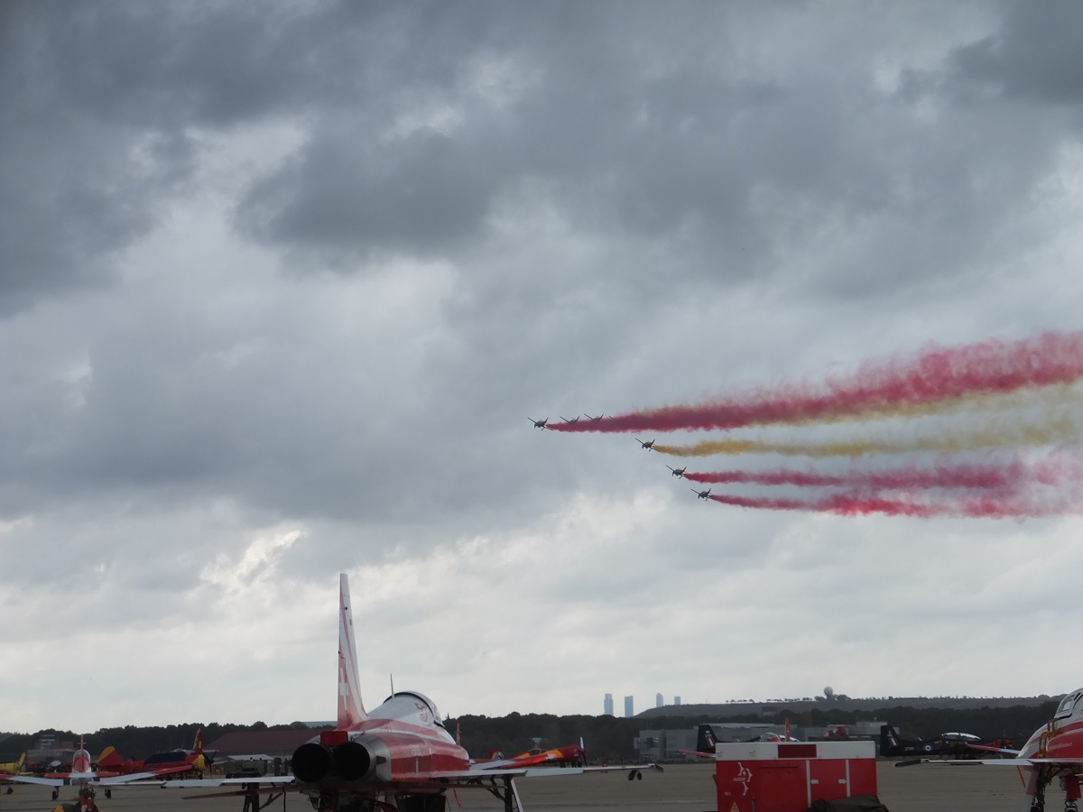 La base aérea de Torrejón de Ardoz (Madrid) fue este sábado el escenario de la mayor exhibición aérea de la historia de España, que se celebró con motivo del 75 aniversario del Ejército del Aire y a la que asistieron Felipe VI y Juan Carlos I.