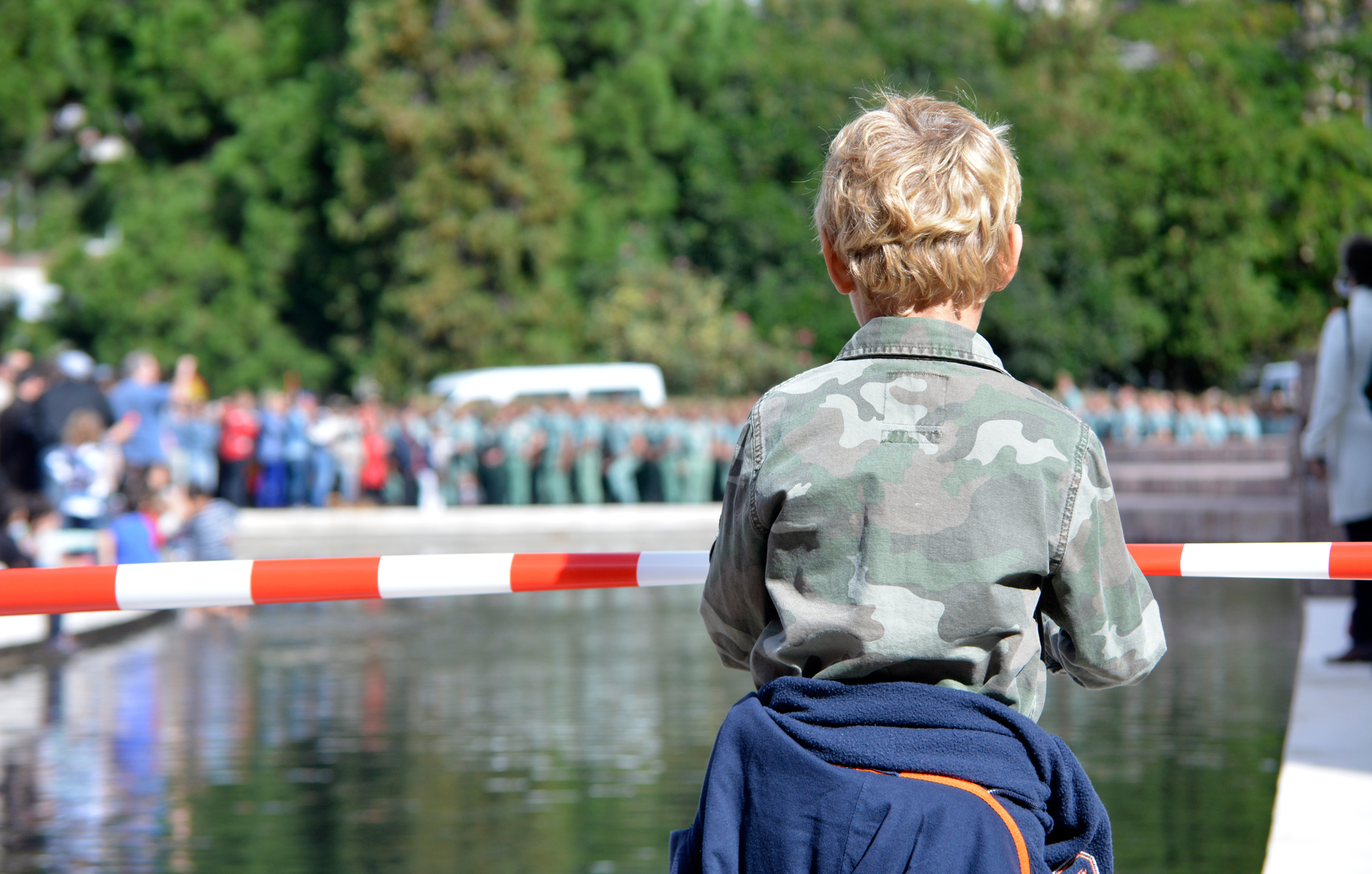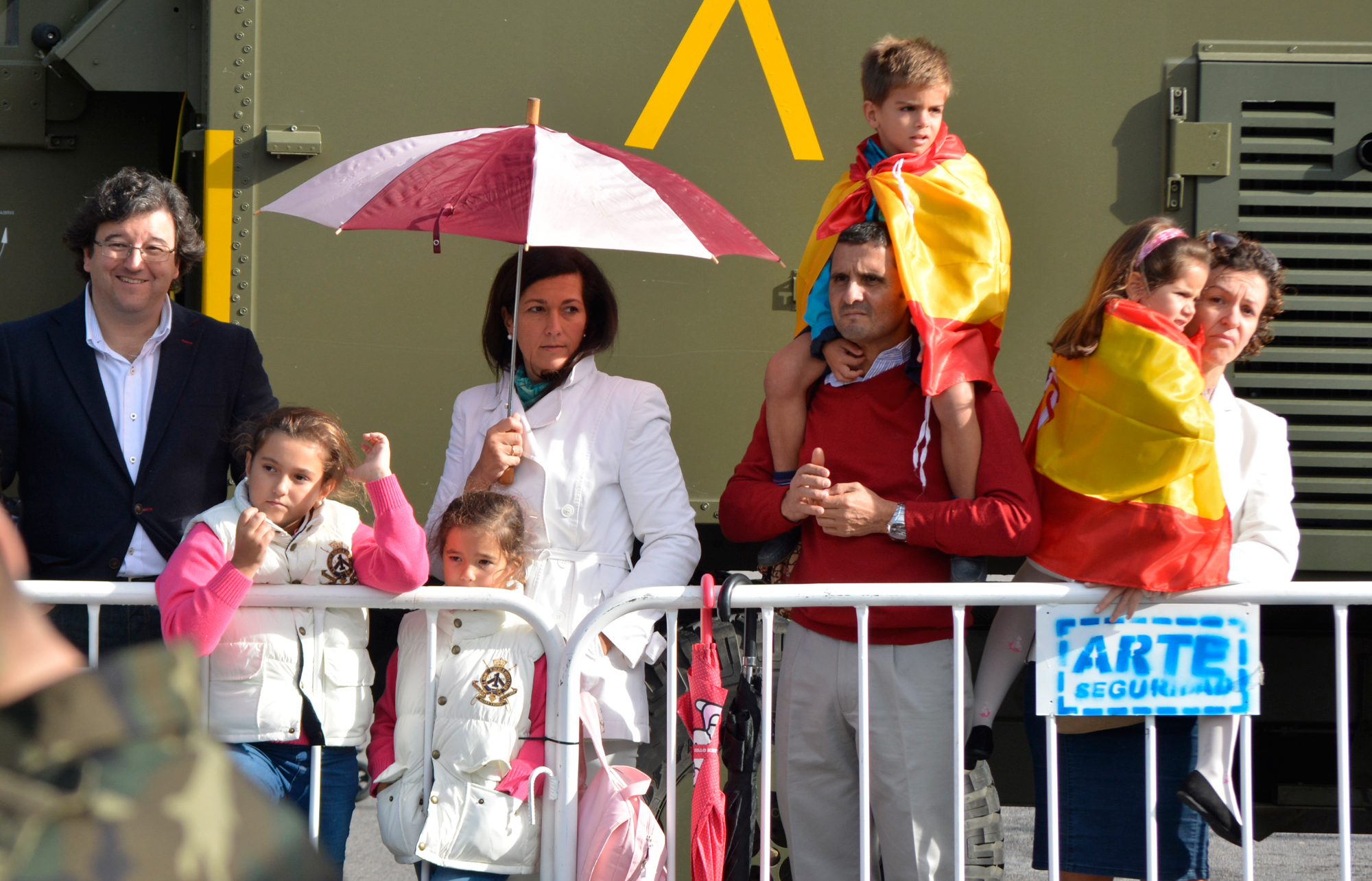 Una familia al completo espectantes antes de comenzar el desfile de las Fuerzas Armadas.
