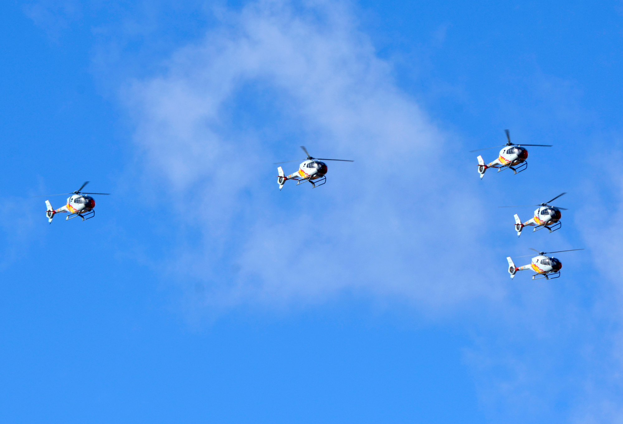 La Patrulla Aspa, conformada por helicópteros EC-120 Colibrí, es una de las dos patrullas acrobáticas del Ejército del Aire.