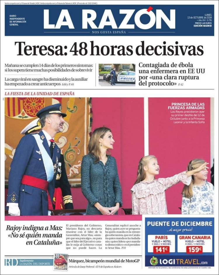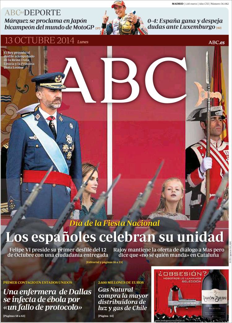 "Catalunya y la crisis del ébola marcan el primer 12-O del rey Felipe"