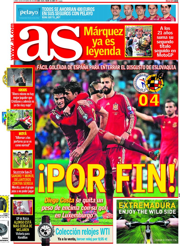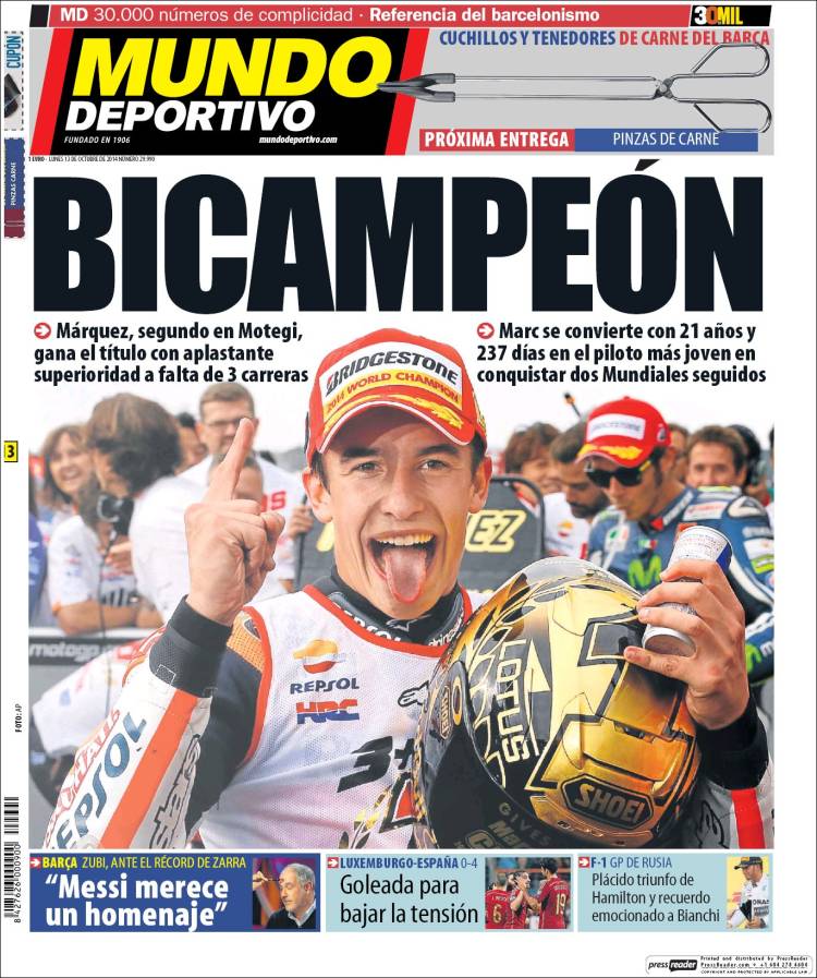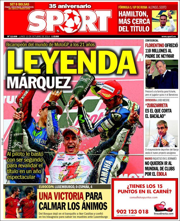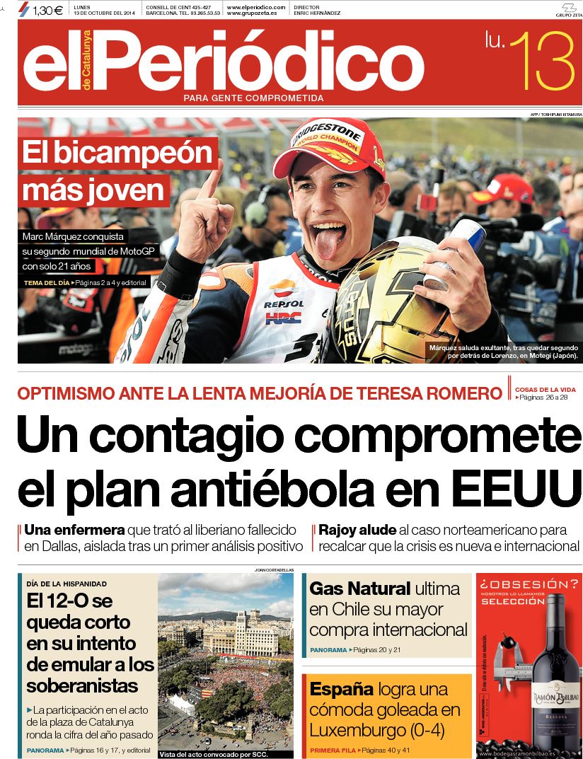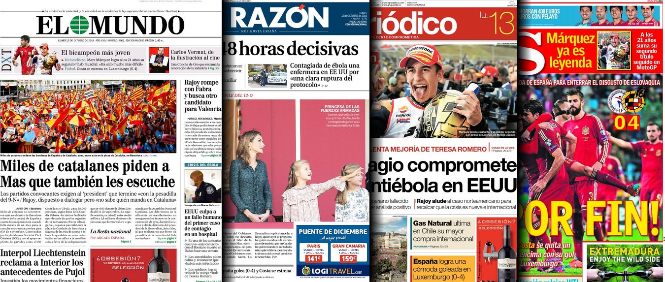 Portadas de los diarios El Mundo, El País, ABC, La Razón, La Vanguardia, El Periódico, Cinco Días, El Economista, Expansión, Marca, As, Mundo Deportivo y Sport.