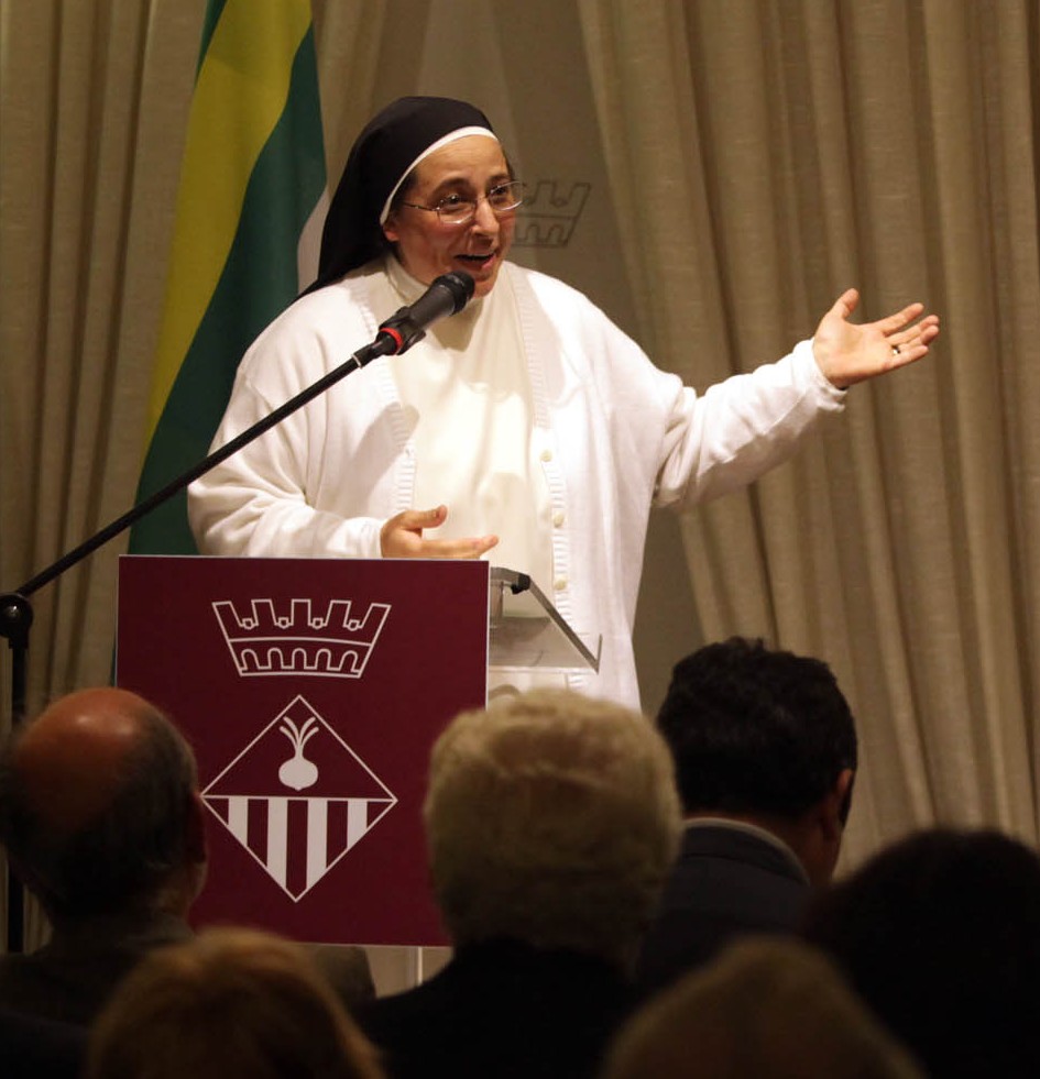 Teresa Forcades Vila (Barcelona, 1966) es una monja española de la Orden de San Benito, además de médico y teóloga, conocida por sus posiciones feministas y su actitud crítica hacia las multinacionales farmacéuticas en temas como la gestión de la gripe A. Actualmente reside en el monasterio de Montserrat y prepara un libro sobre la medicalización. En 2013 creo junto a Arcadi Oliveres una plataforma popular por el derecho a decidir de los catalanes con la idea de presentarse a las próximas elecciones autonómicas. Para las generales quiere aliarse con Podemos