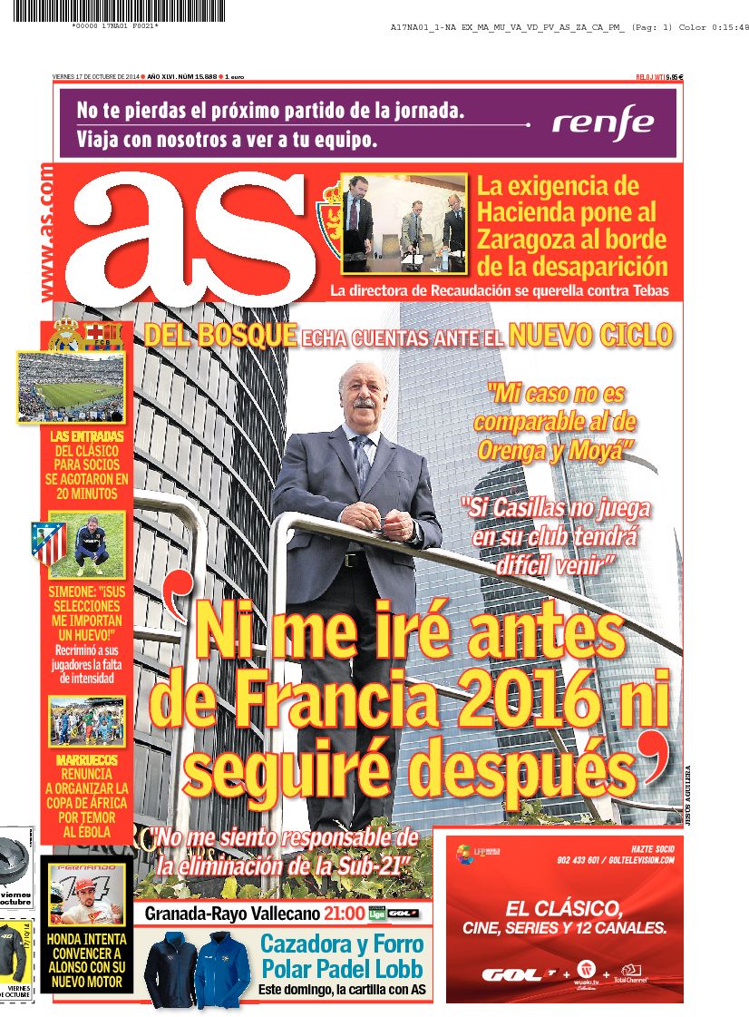 " 'Ni me iré antes de Francia 2016 ni seguiré después' "