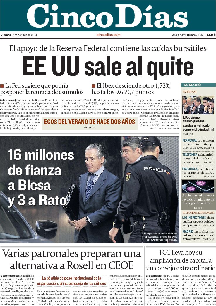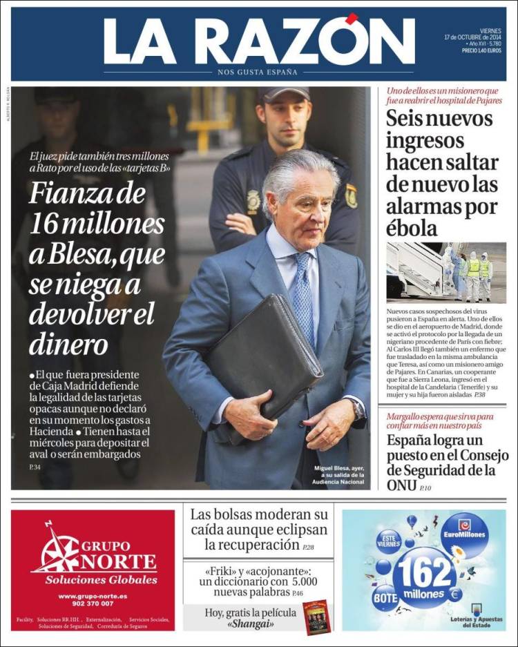 "Fianzas de 16 millones a Blesa y tres a Rato por las 'tarjetas negras' "