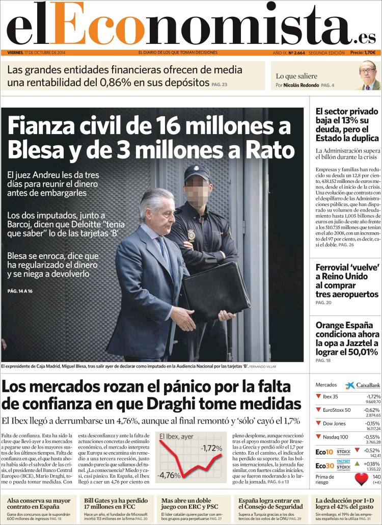 "Exigen fianzas millonarias a Blesa y Rato por las tarjetas"