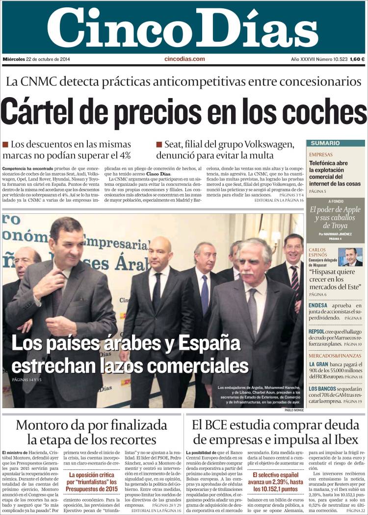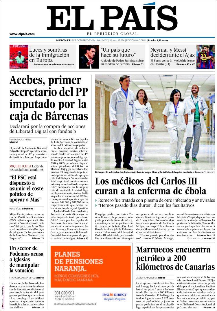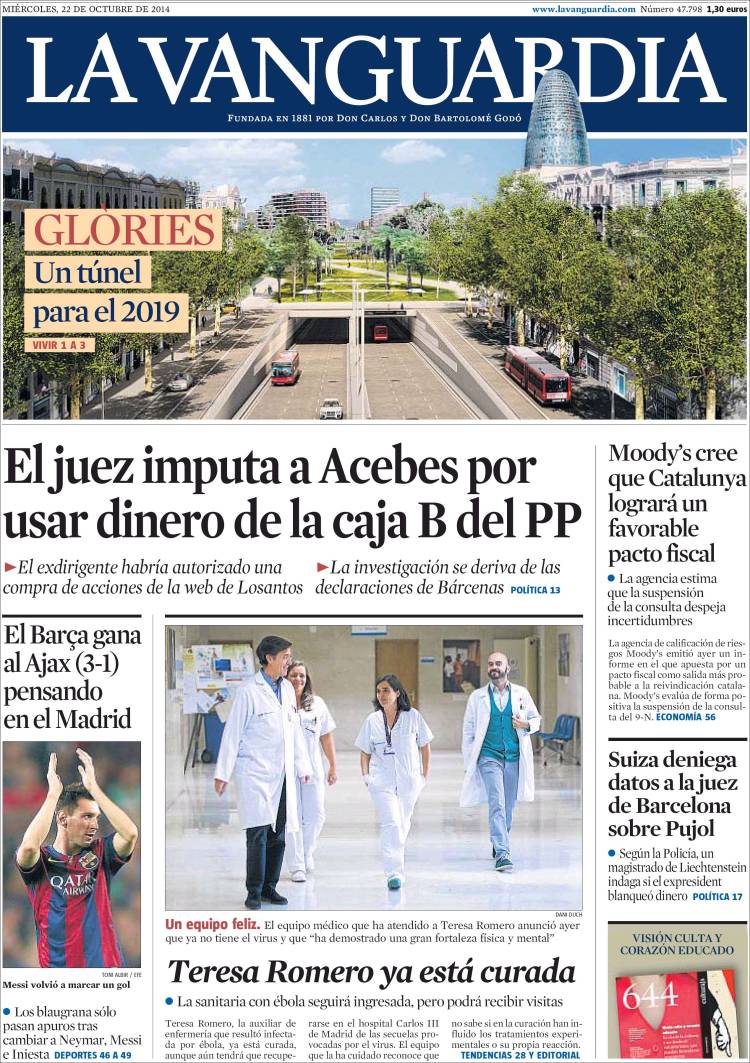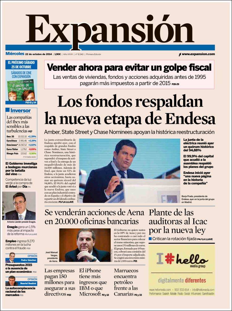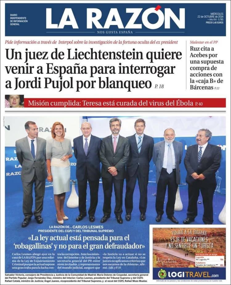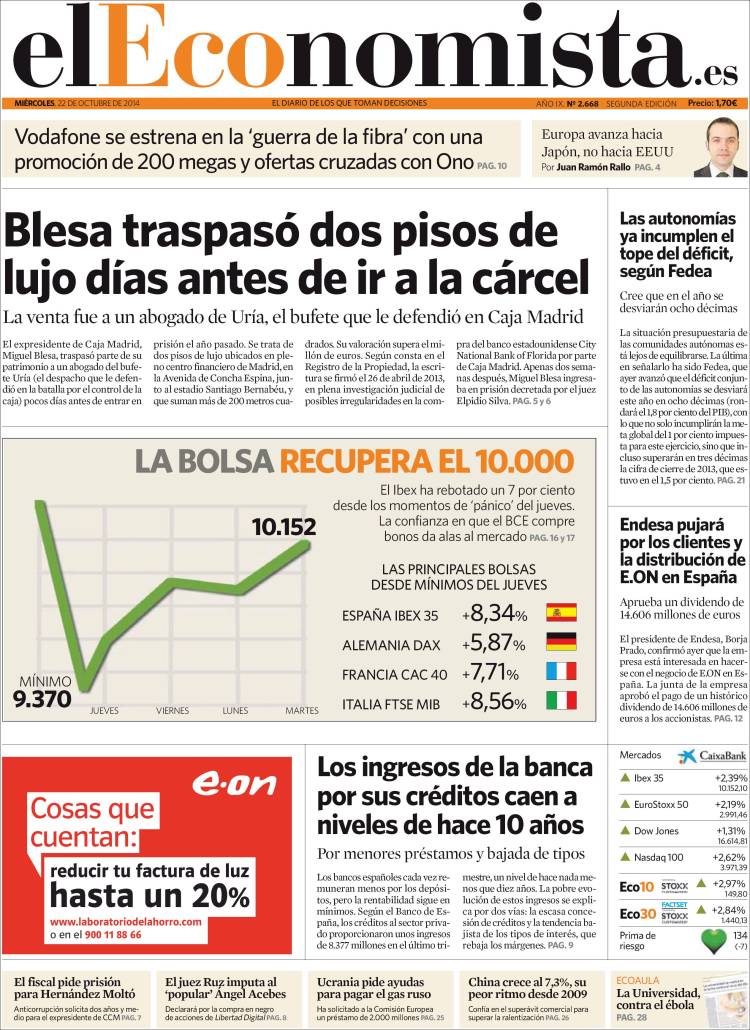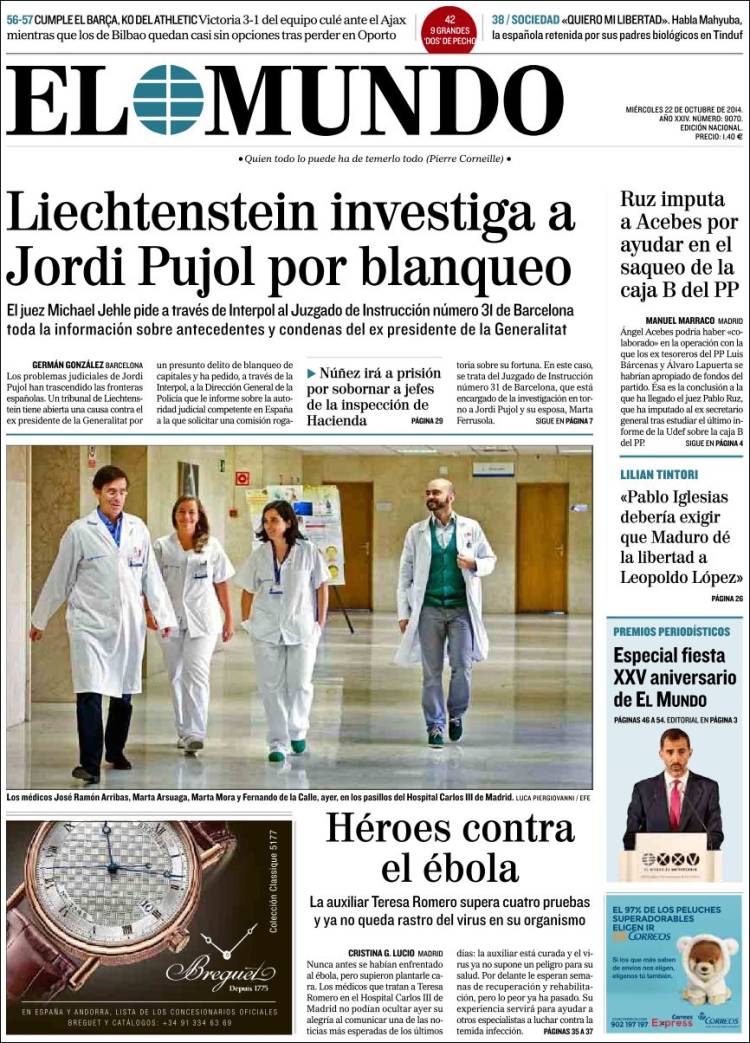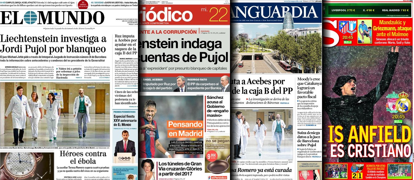 Portadas de los diarios El Mundo, El País, ABC, La Razón, La Vanguardia, El Periódico, Cinco Días, El Economista, Expansión, Marca, As, Mundo Deportivo y Sport.