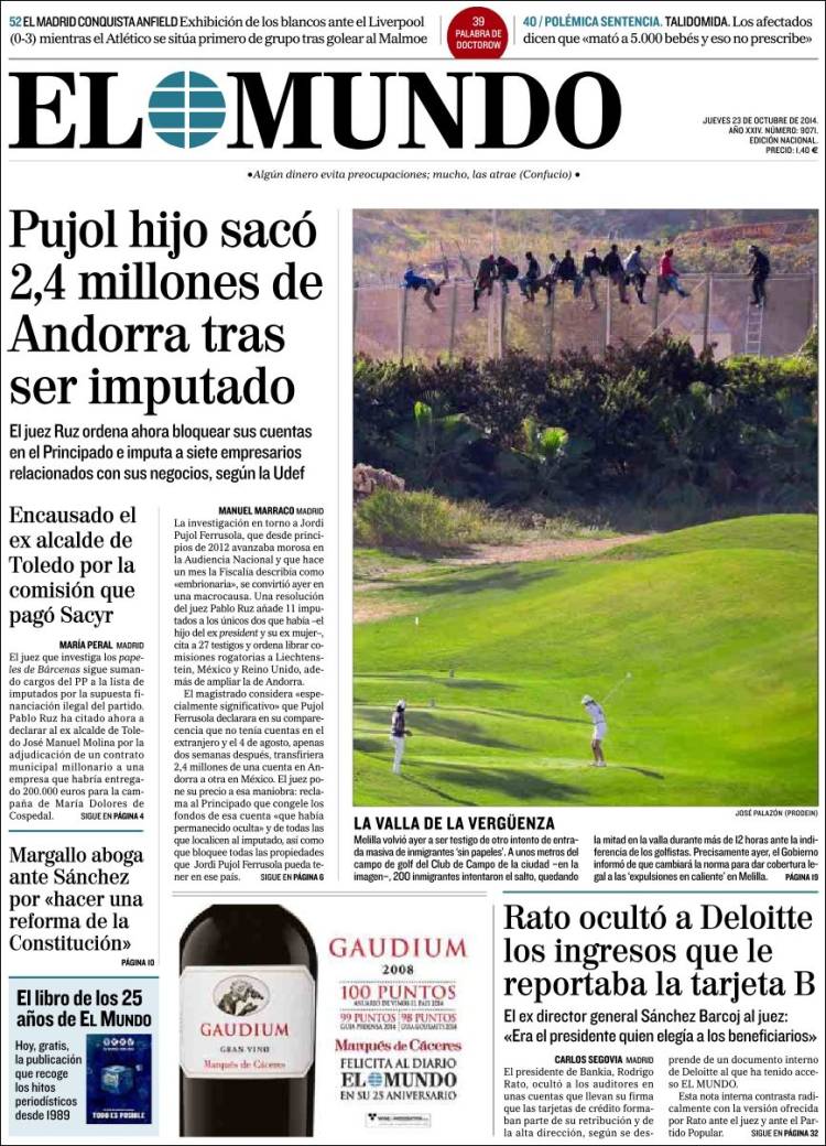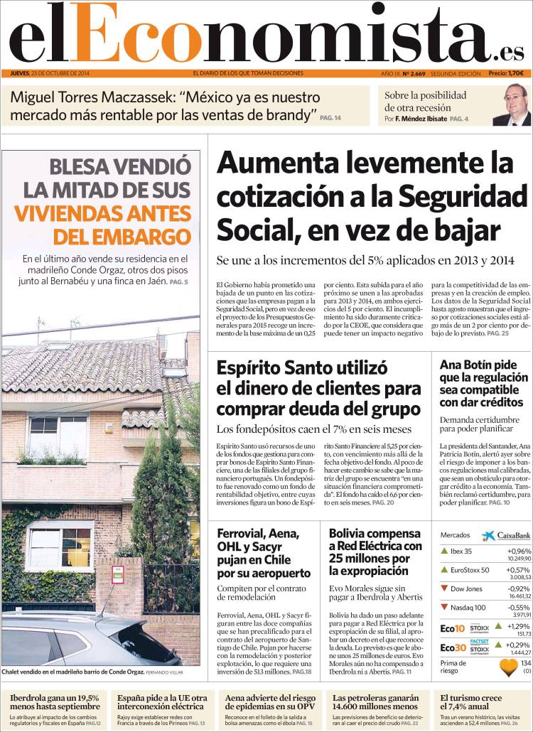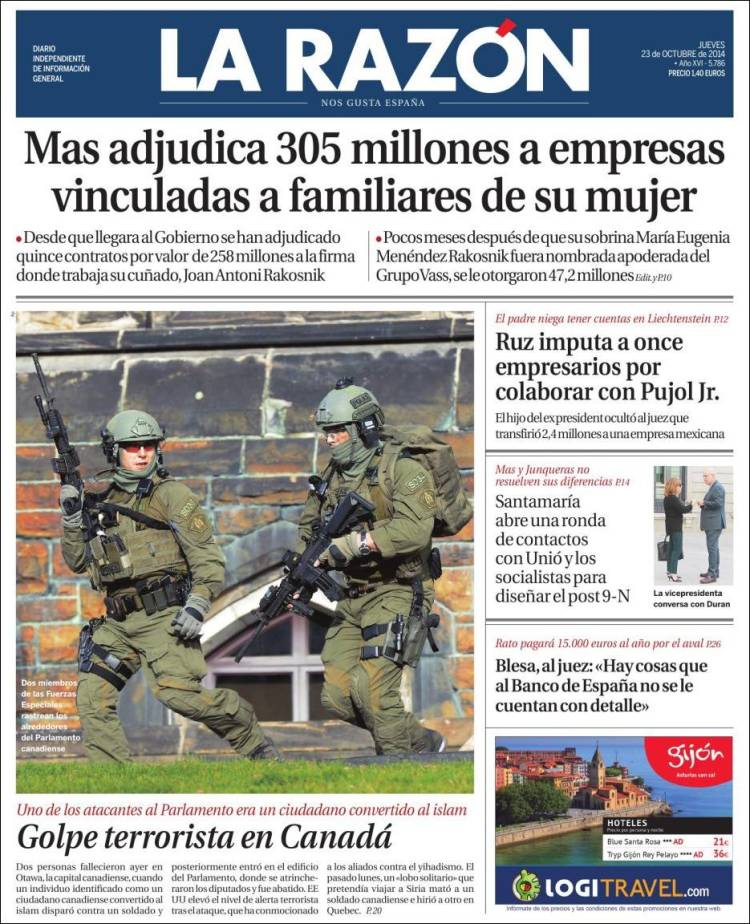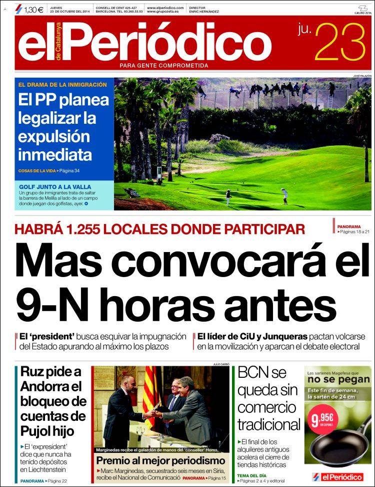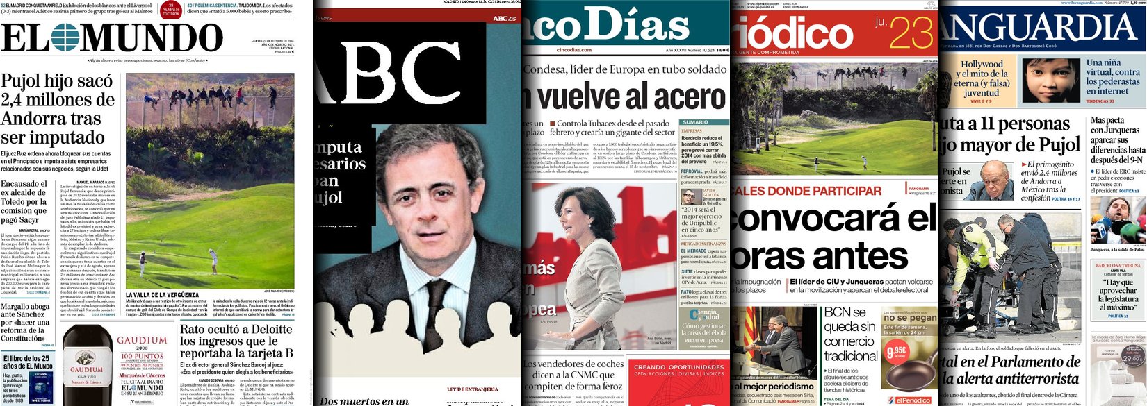 Portadas de los diarios El Mundo, El País, ABC, La Razón, La Vanguardia, El Periódico, Cinco Días, El Economista, Expansión, Marca, As, Mundo Deportivo y Sport.