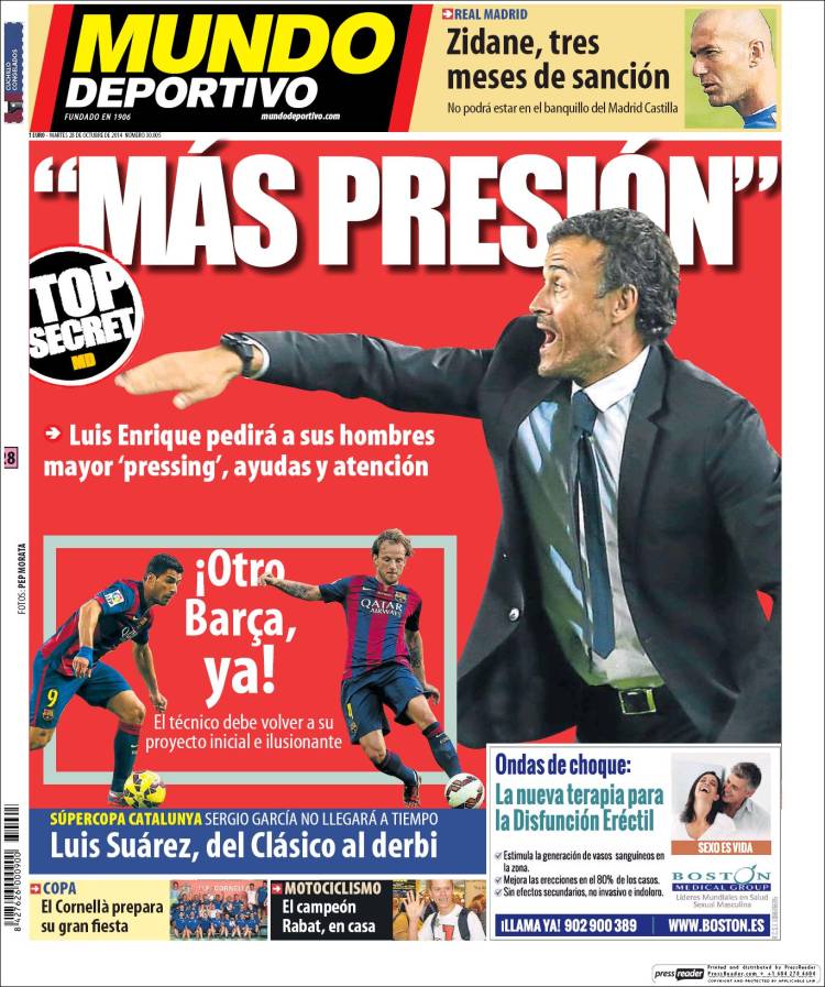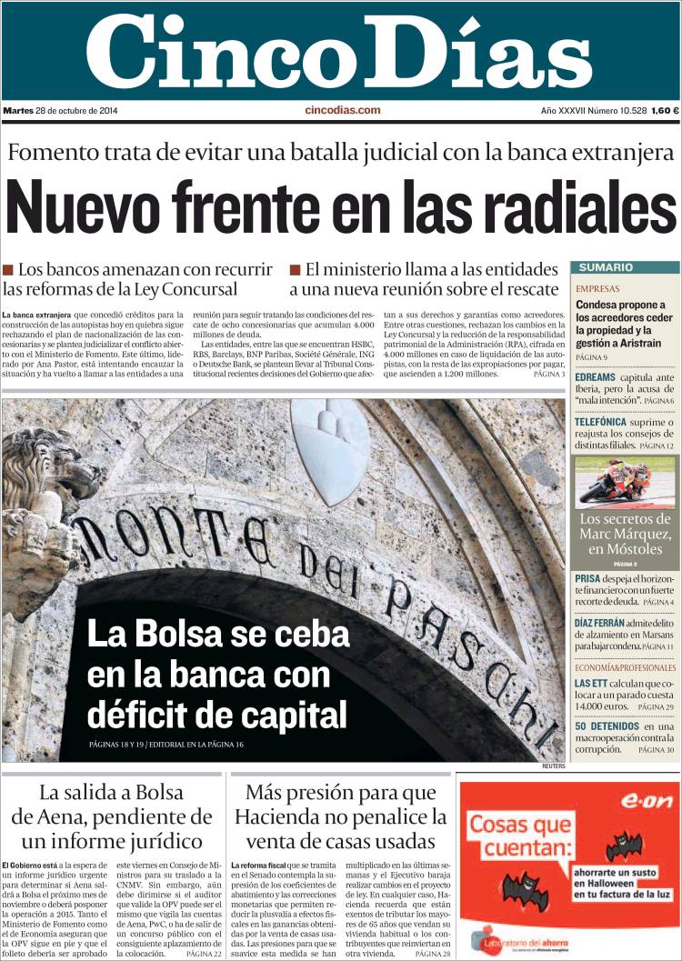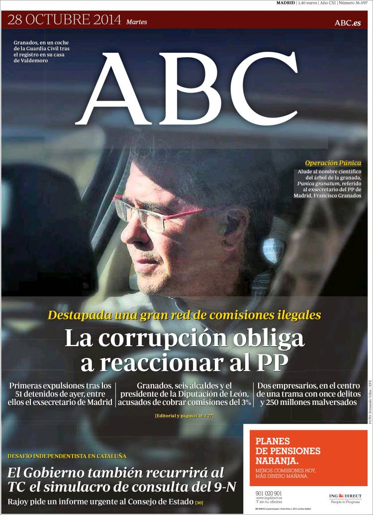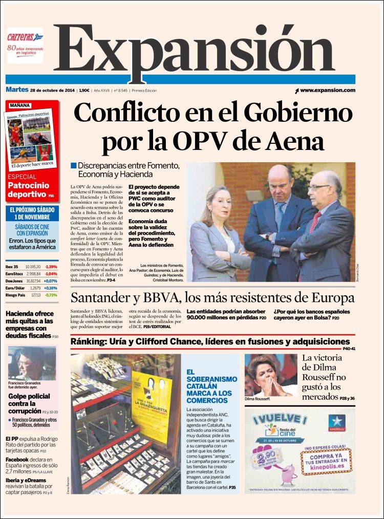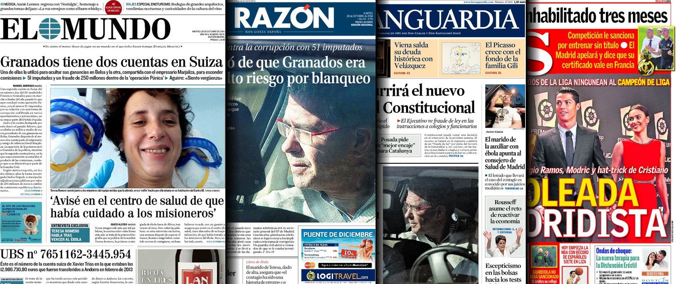 Portadas de los diarios El Mundo, El País, ABC, La Razón, La Vanguardia, El Periódico, Cinco Días, El Economista, Expansión, Marca, As, Mundo Deportivo y Sport.