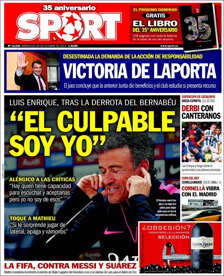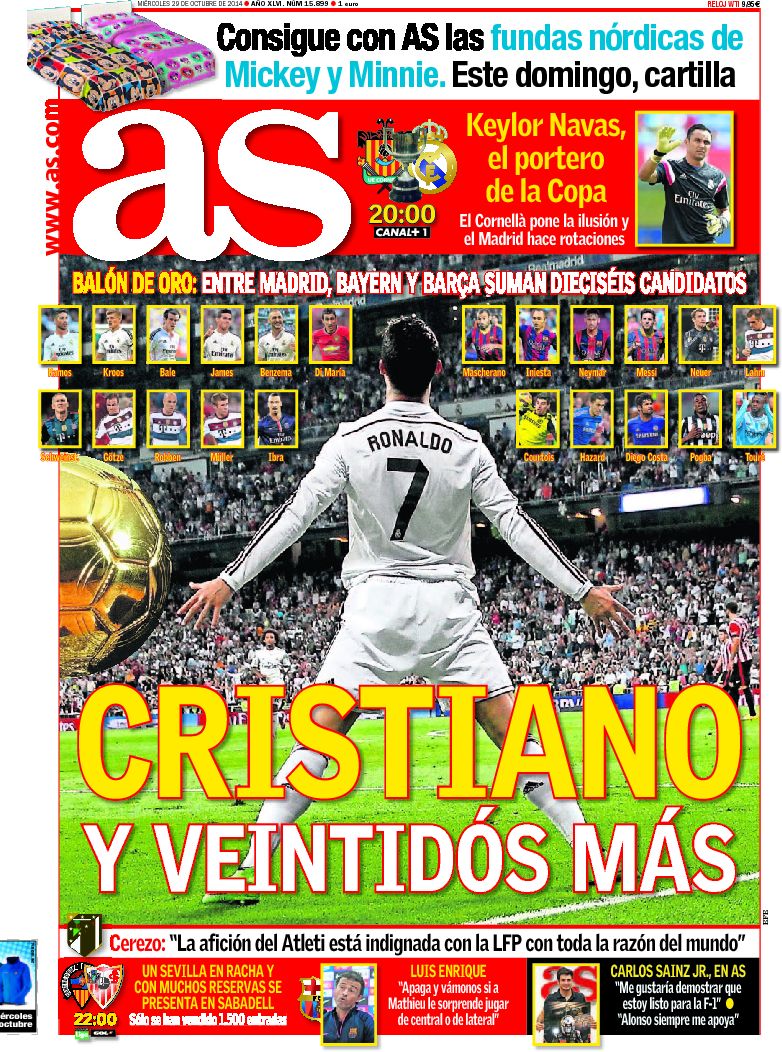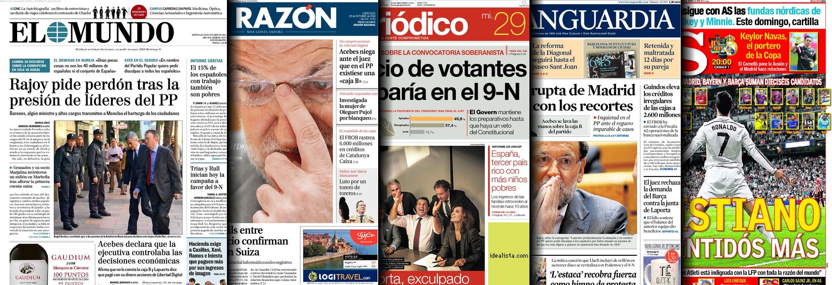 Portadas de los diarios El Mundo, El País, ABC, La Razón, La Vanguardia, El Periódico, Cinco Días, El Economista, Expansión, Marca, As, Mundo Deportivo y Sport.