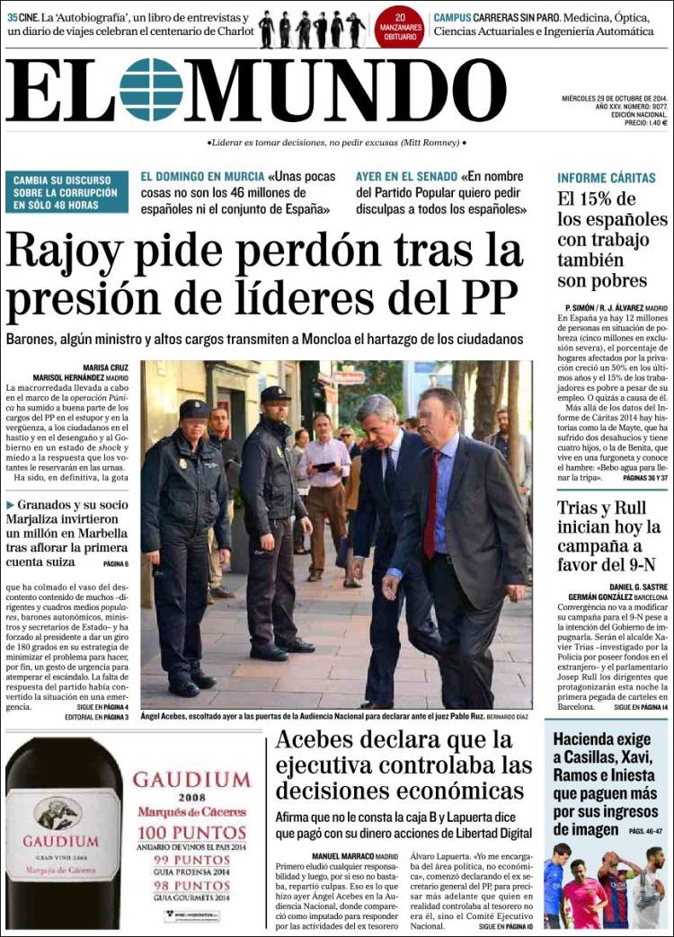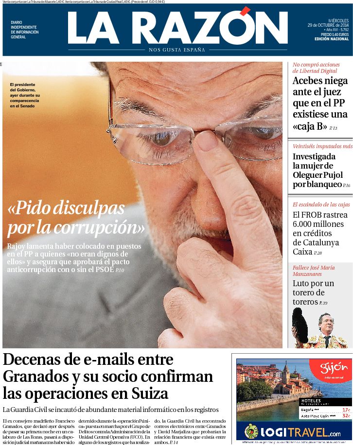 "Rajoy pide perdón tras la presión de líderes del PP"