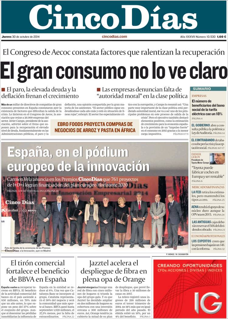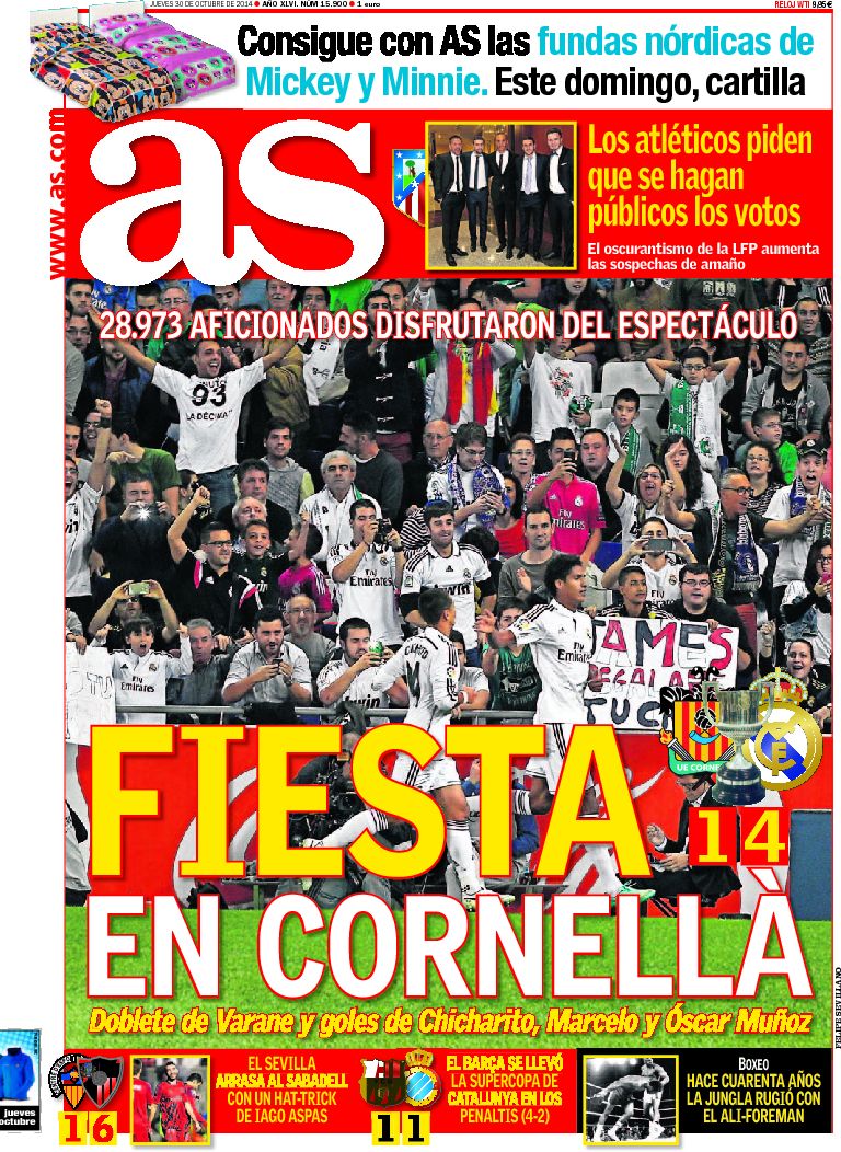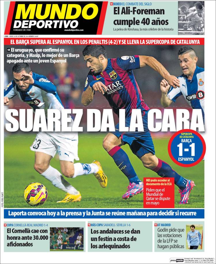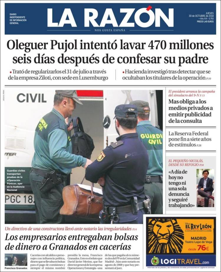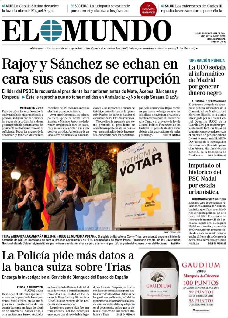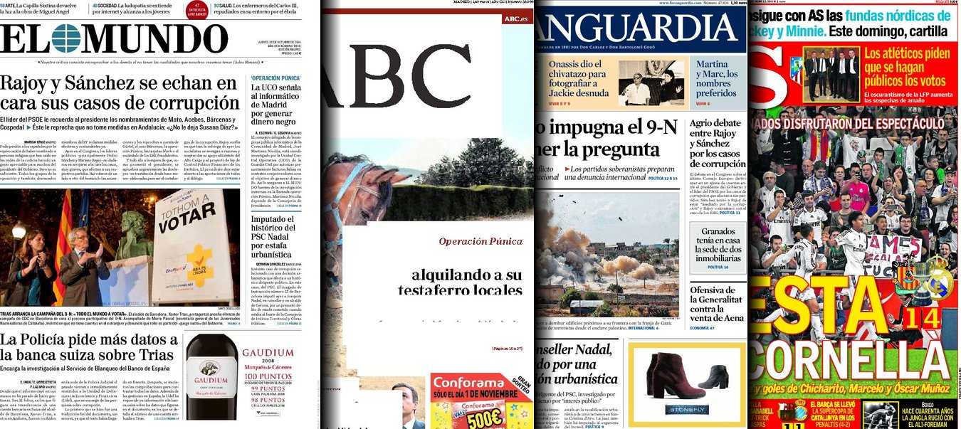 Portadas de los diarios El Mundo, El País, ABC, La Razón, La Vanguardia, El Periódico, Cinco Días, El Economista, Expansión, Marca, As, Mundo Deportivo y Sport.
