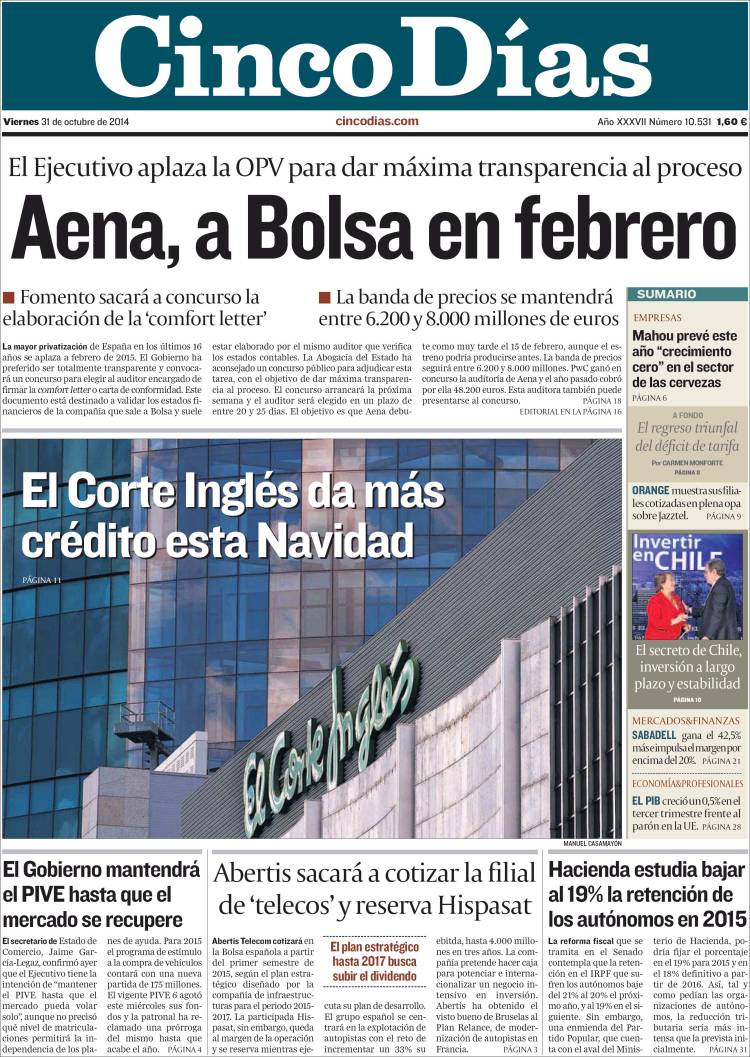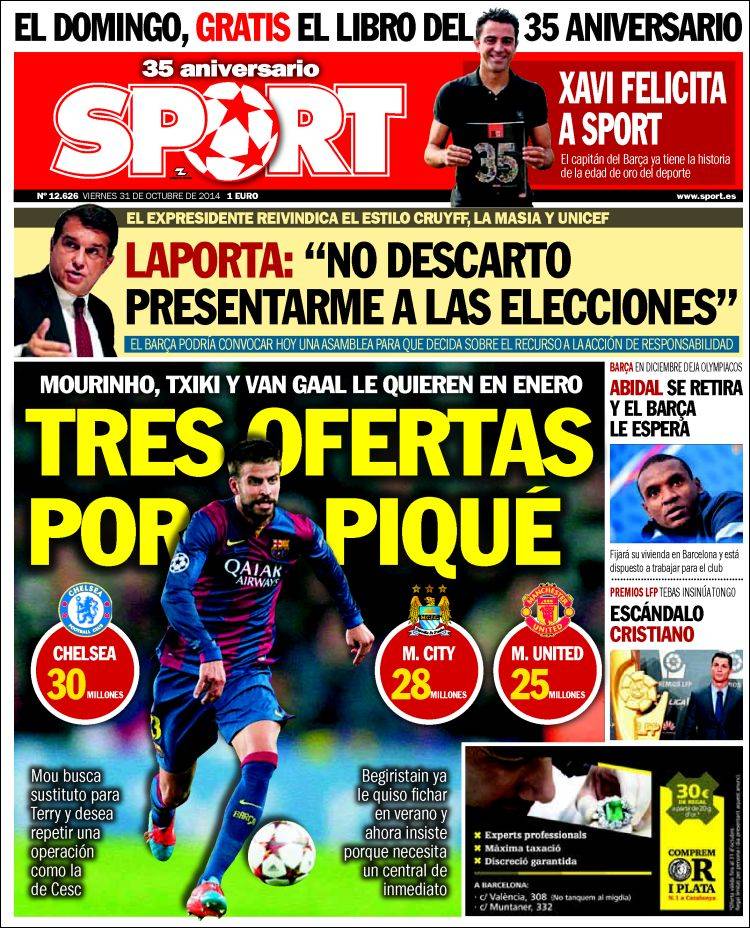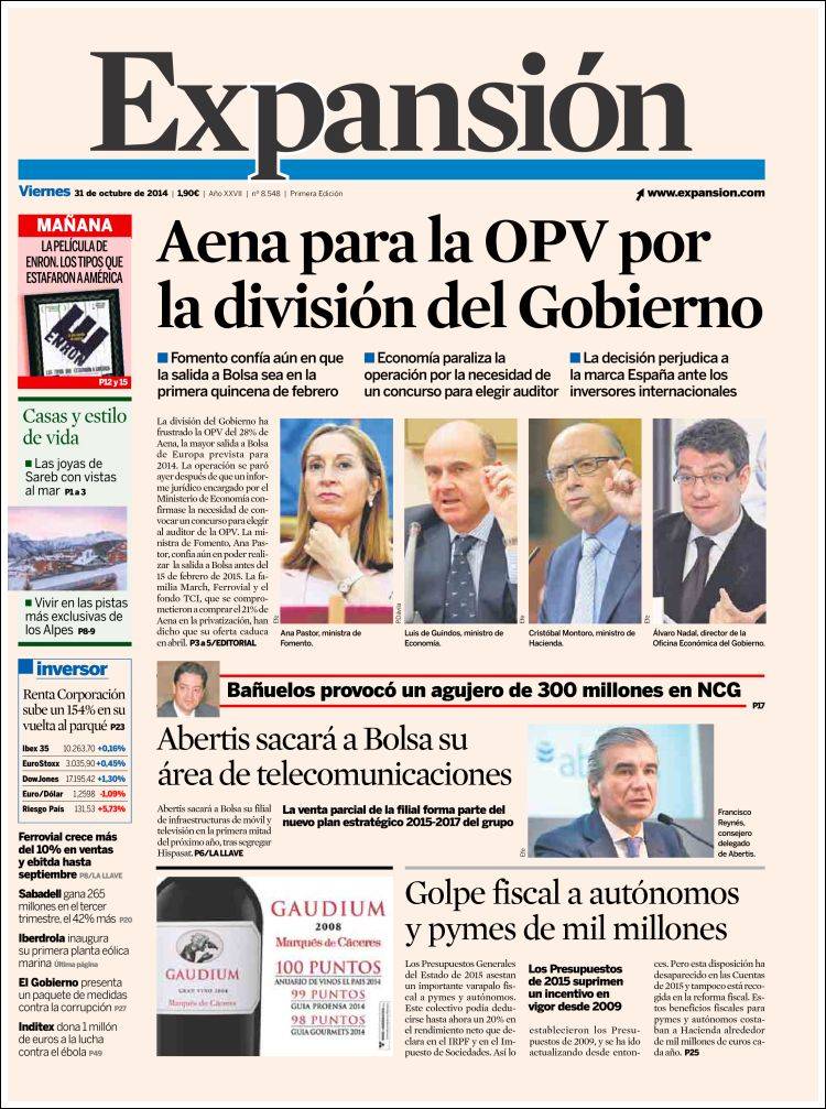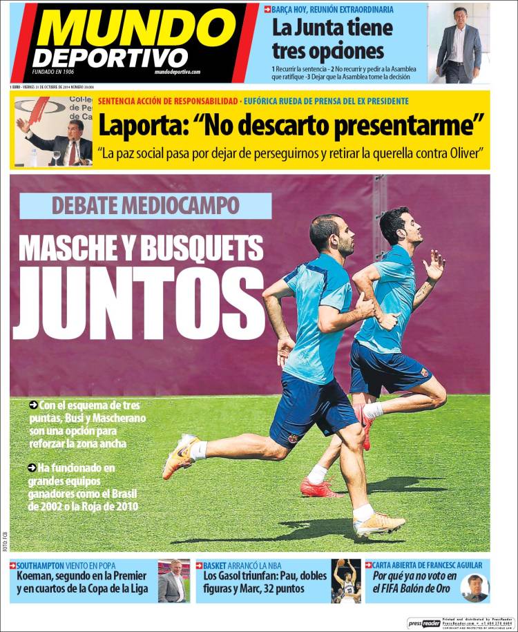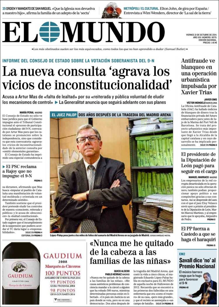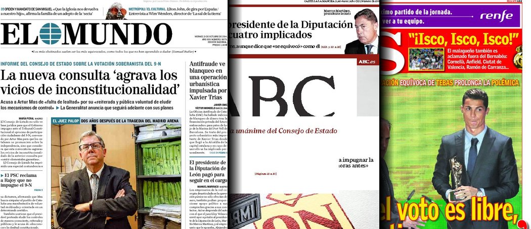 Portadas de los diarios El Mundo, El País, ABC, La Razón, La Vanguardia, El Periódico, Cinco Días, El Economista, Expansión, Marca, As, Mundo Deportivo y Sport.