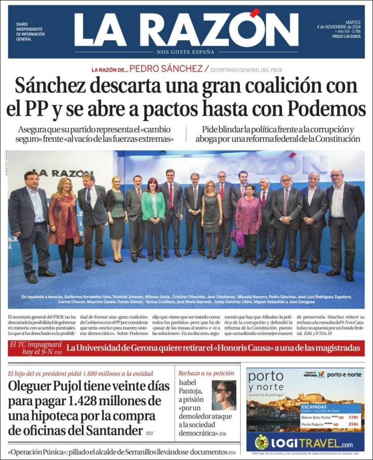 "Sánchez descarta una gran coalición con el PP y se abre pactos hasta con Podemos"