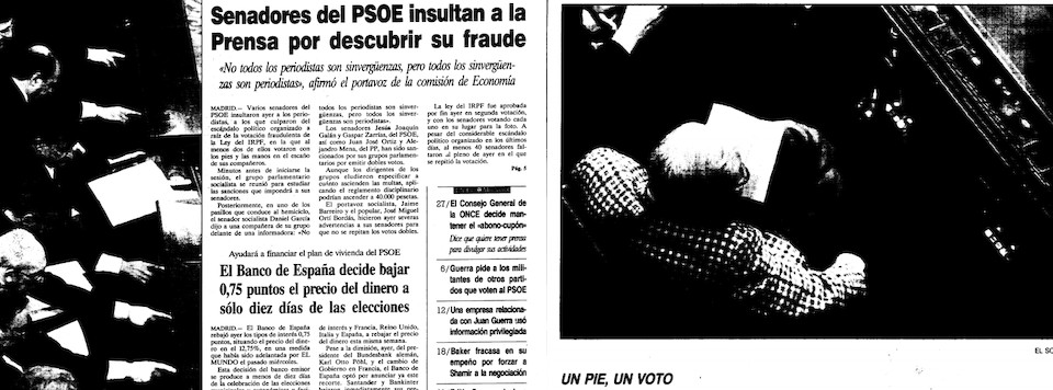 El 10 de mayo de 1991 el Senado español fue testigo de un bochornoso espectáculo. En aquel momento, la Cámara Alta había convocado pleno para la votación de la ley del IRPF. Los senadores socialistas presentes hicieron gala de su compromiso con el partido y la norma al votar no sólo por ellos mismos sino por varios compañeros de forma simultánea. Algunos usaron los dos brazos al mismo tiempo y hubo quien empleó hasta los pies. En total, al final de la votación, se habían emitido 21 votos más que senadores había presentes en el pleno. Es decir 156 senadores emitieron 177 votos. Hay que recordar que el artículo 93, apartado dos, del reglamento del Senado afirma que "el voto de los senadores es personal e indelegable".
