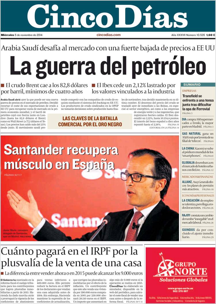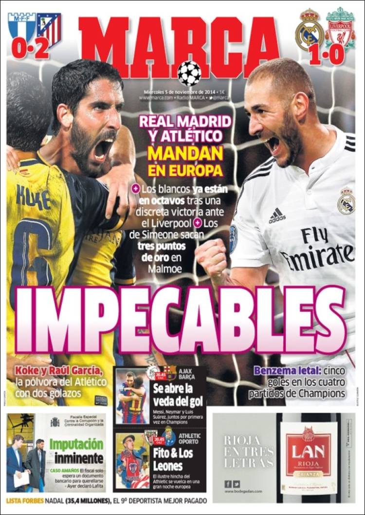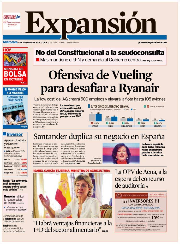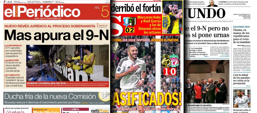 Portadas de los diarios El Mundo, El País, ABC, La Razón, La Vanguardia, El Periódico, Cinco Días, El Economista, Expansión, Marca, As, Mundo Deportivo y Sport.