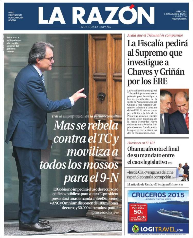"Mas se rebela contra el TC y moviliza a todos los mossos para el 9-N"