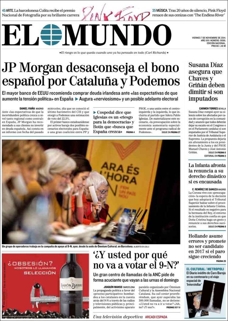 "JP Morgan desaconseja el bono español por Cataluña y Podemos"