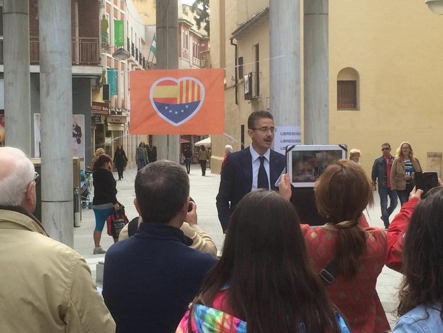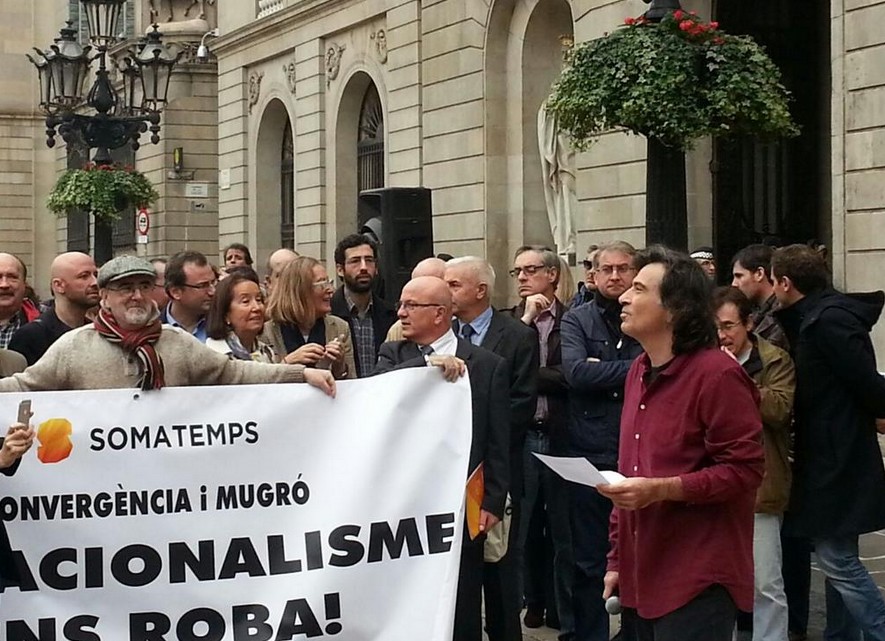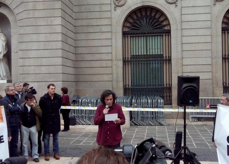 Arcadi Espada, minutos antes de comenzar la lectura del manifiesto de Libres e Iguales en la plaza de San Jaime en Barcelona