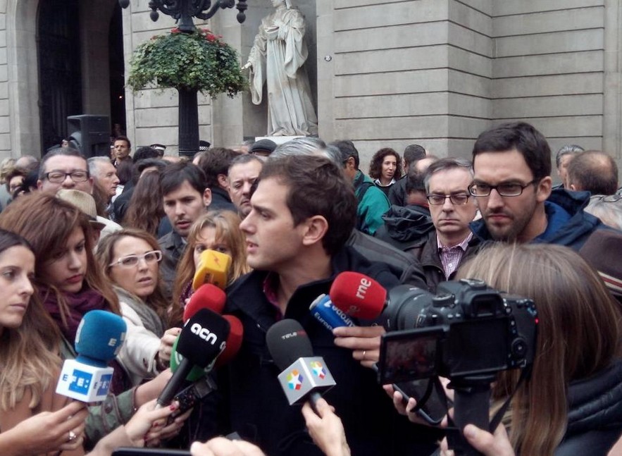 Albert Rivera atiende a los medios tras el acto de Libres e Iguales en Barcelona