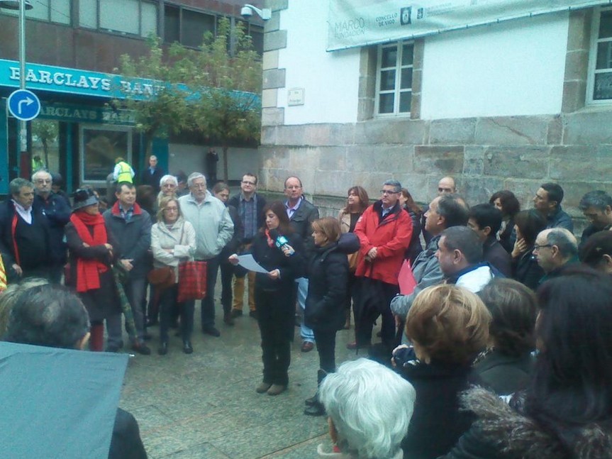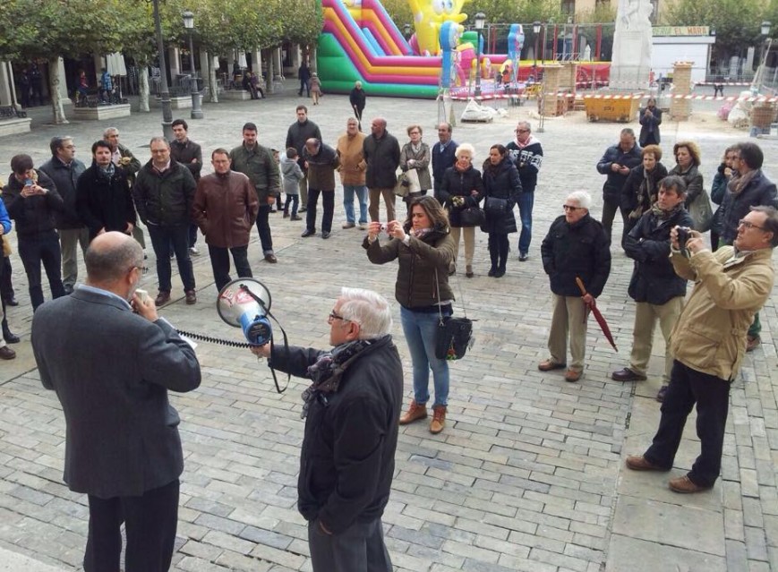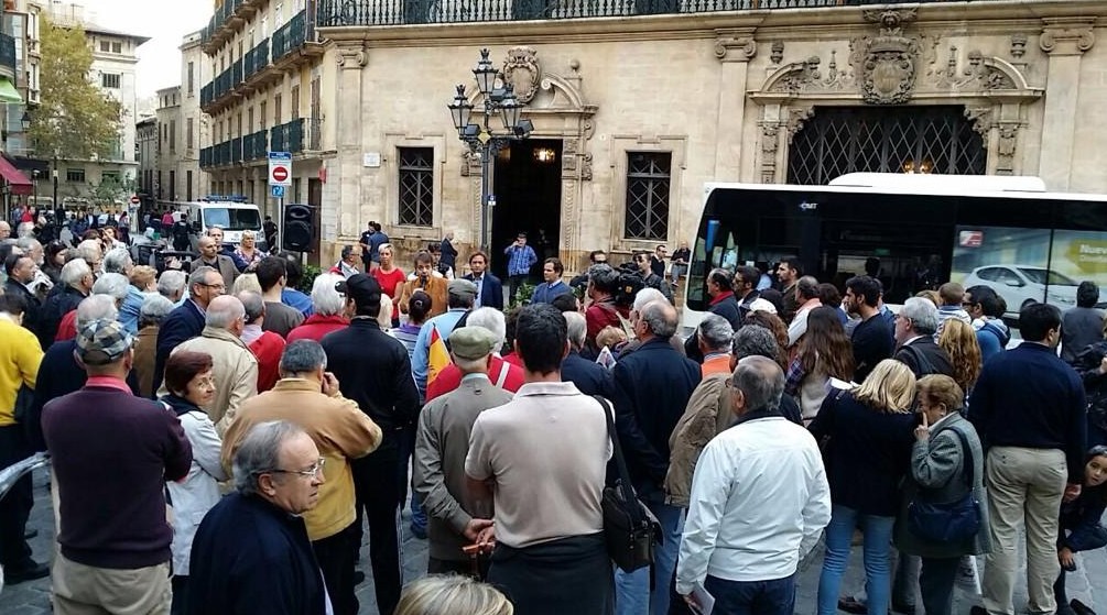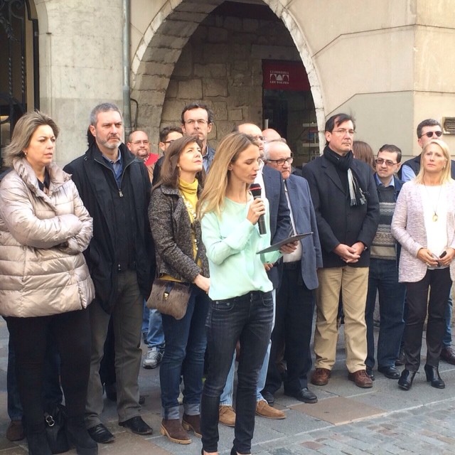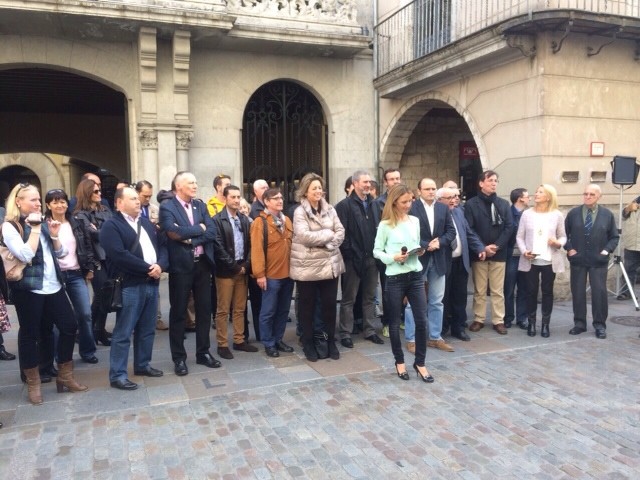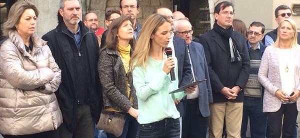 Acto de Libres e Iguales en Gerona, donde Cayetana Álvarez de Toledo ha sido la encargada de leer el manifiesto. Unos 80 ciudadanos han querido manifestarse en defensa de la soberanía nacional en Gerona