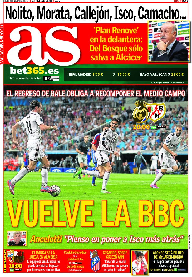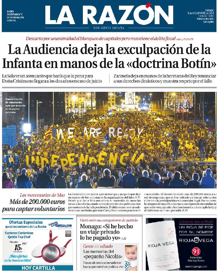 Portadas de los diarios ABC, La Razón, As, El Periódico y La Vanguardia.