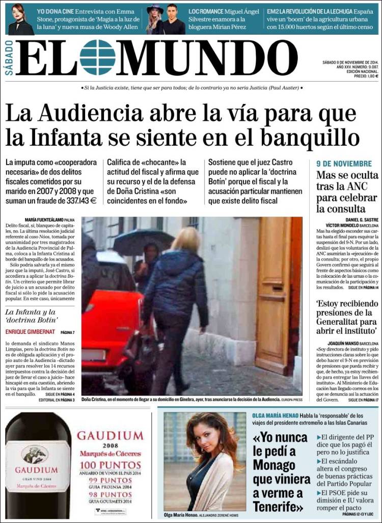 "La Audiencia abre la vía para que la Infanta se siente en el banquillo"