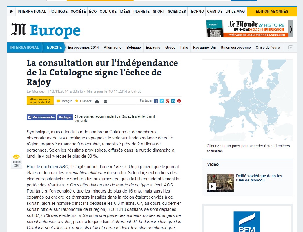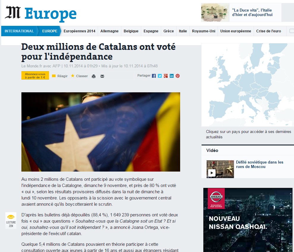 Y Le Monde: "Deux millions de Catalans ont voté pour l'indépendance" Dos millones de catalanes votaron por la independencia.