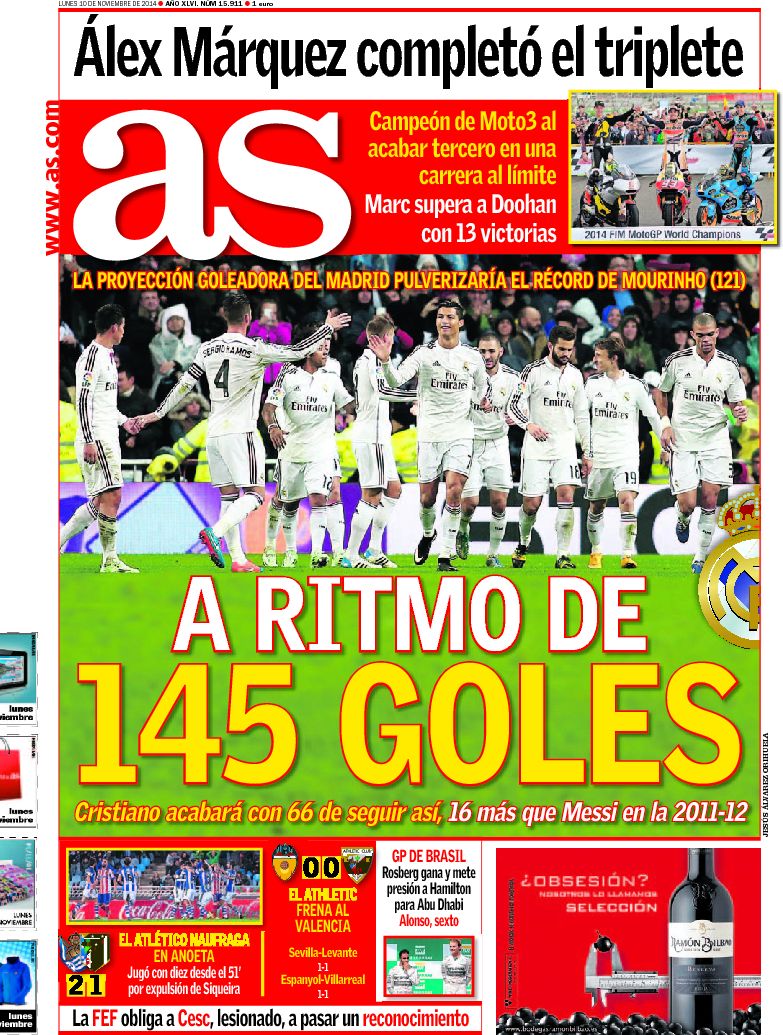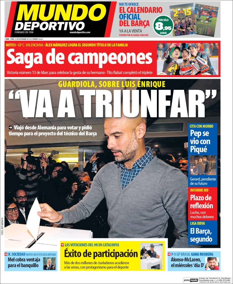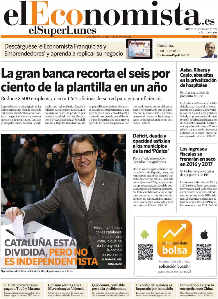 Portadas de los diarios El Mundo, El País, ABC, La Razón, La Vanguardia, El Periódico, Cinco Días, El Economista, Expansión, Marca, As, Mundo Deportivo y Sport.
