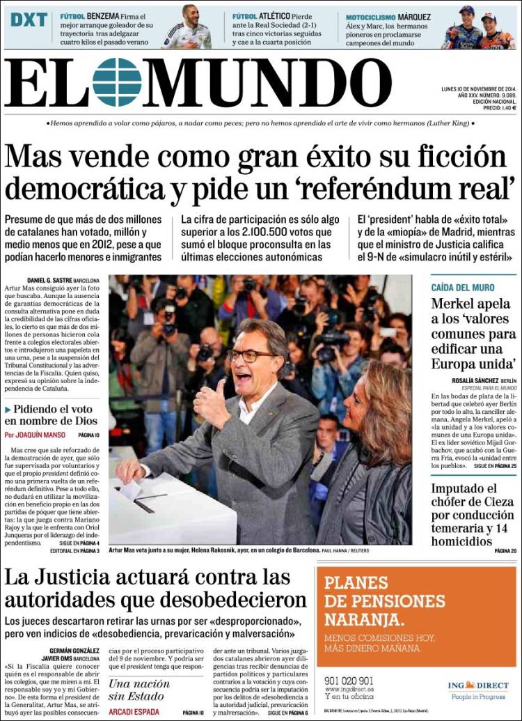 "Mas vende como gran éxito su ficción democrática y pide un 'referéndum real' "