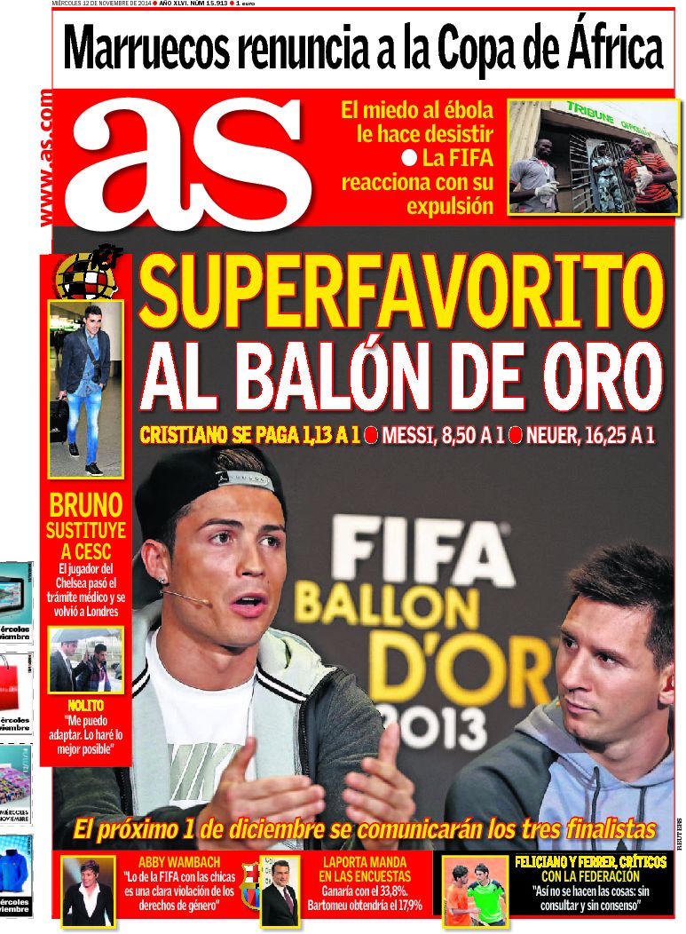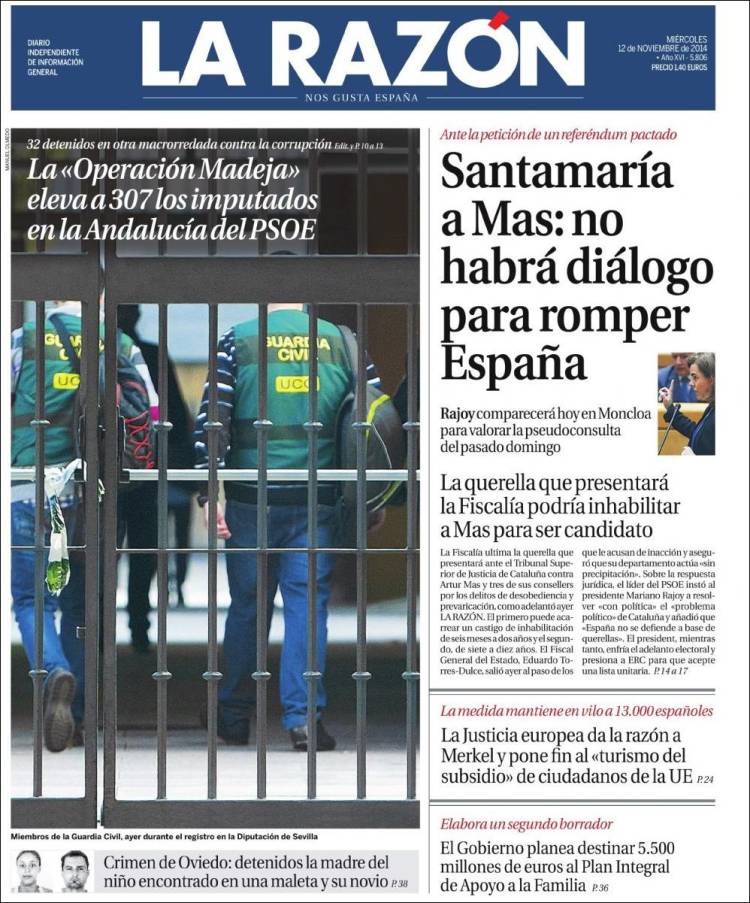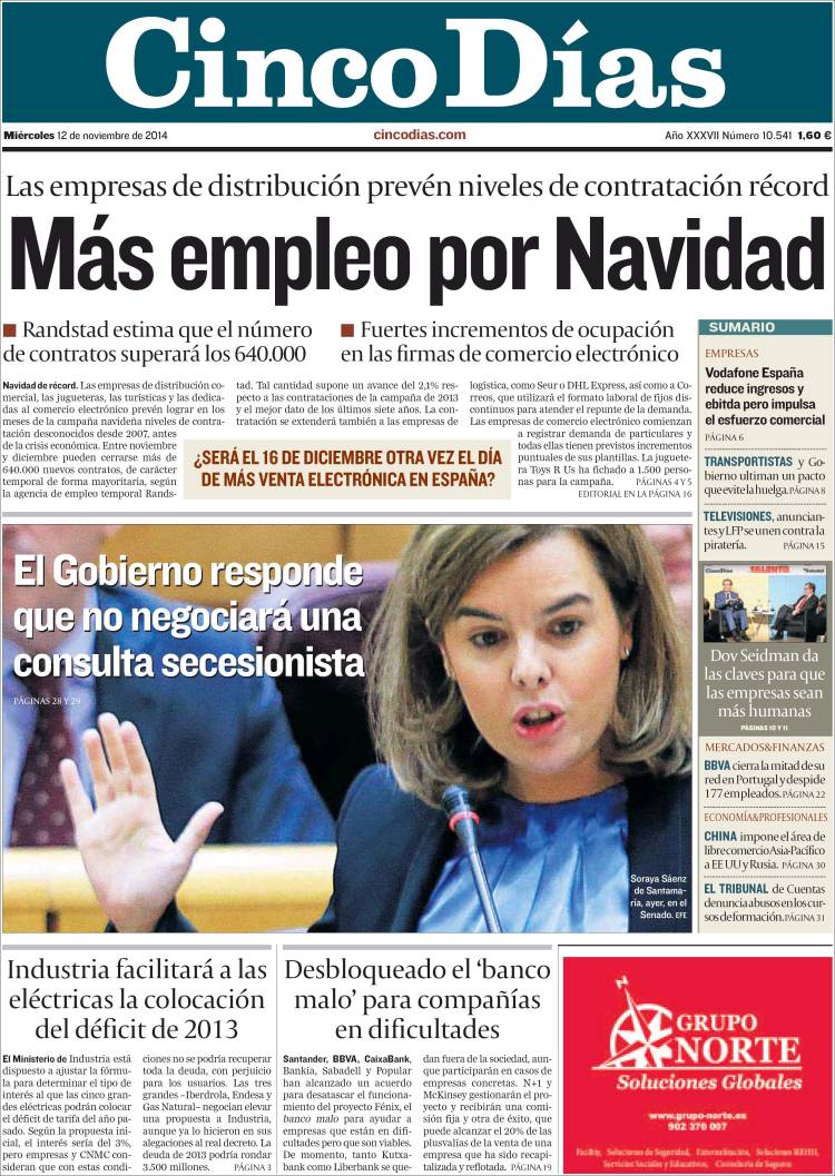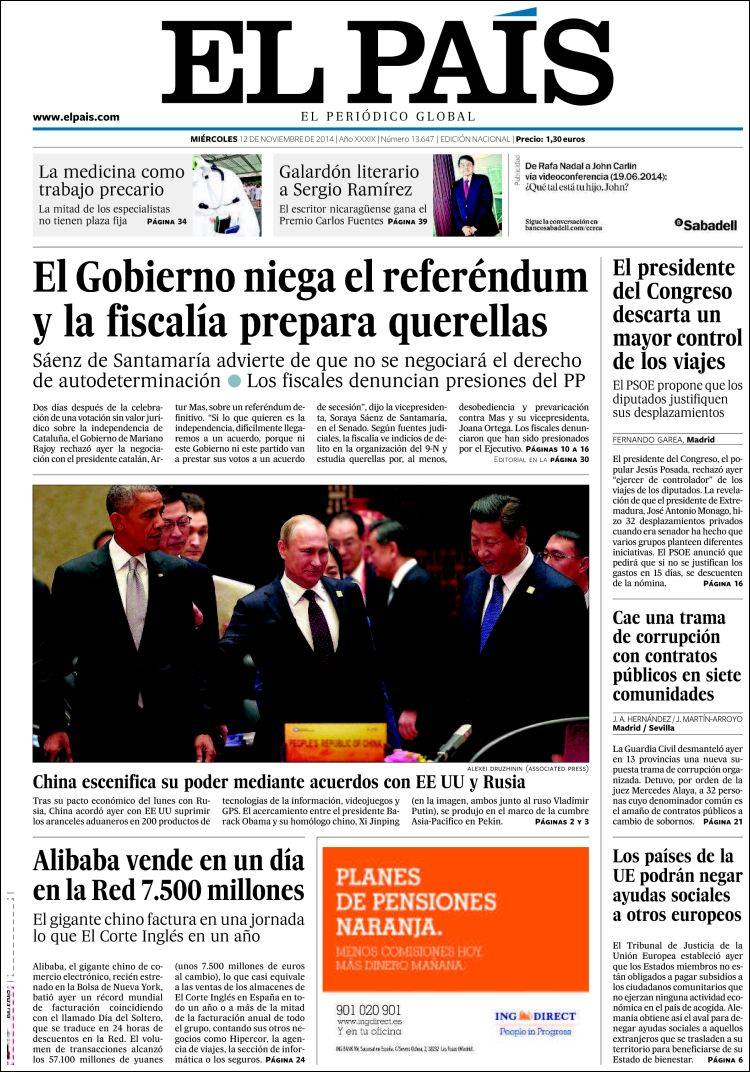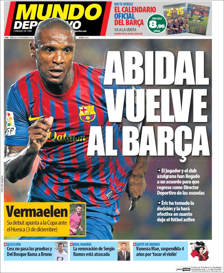 Portadas de los diarios El Mundo, El País, ABC, La Razón, La Vanguardia, El Periódico, Cinco Días, El Economista, Expansión, Marca, As, Mundo Deportivo y Sport.