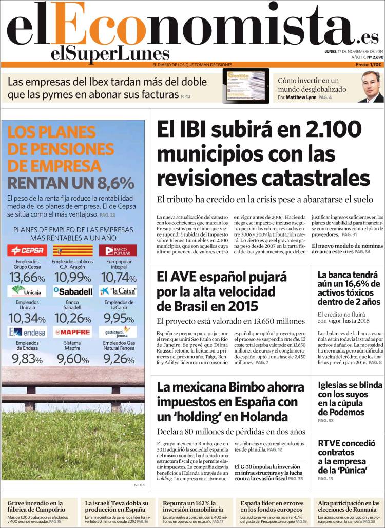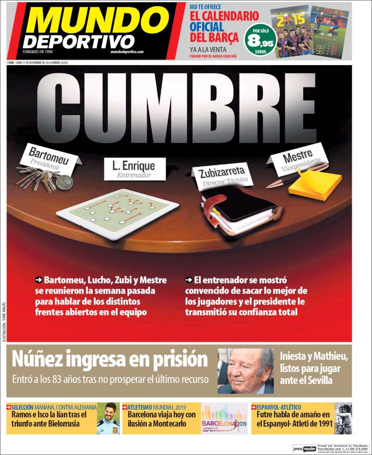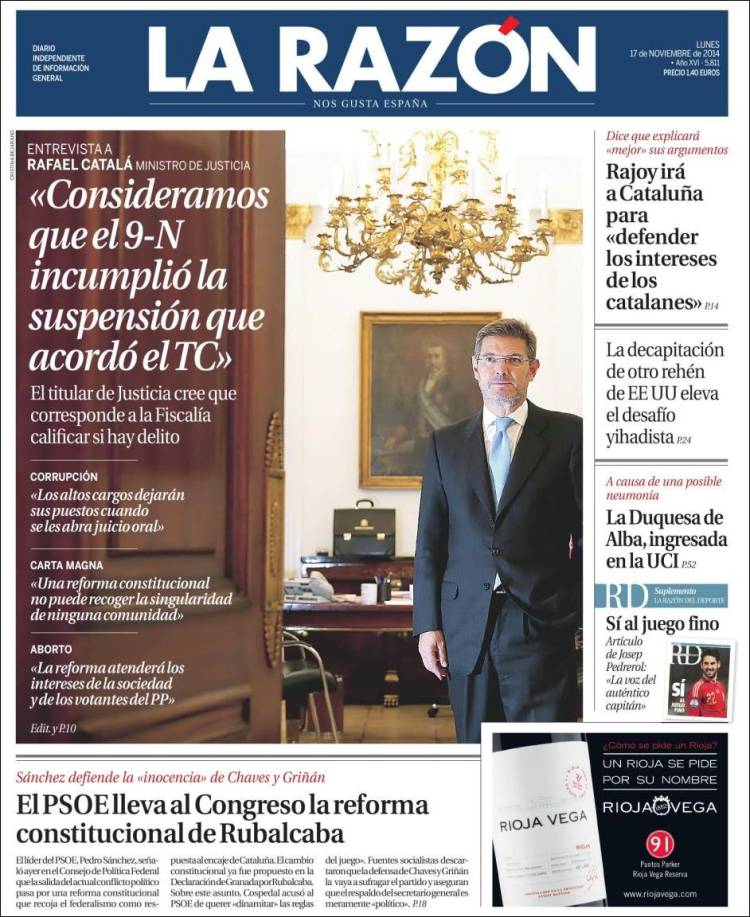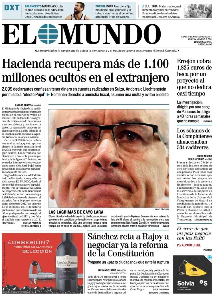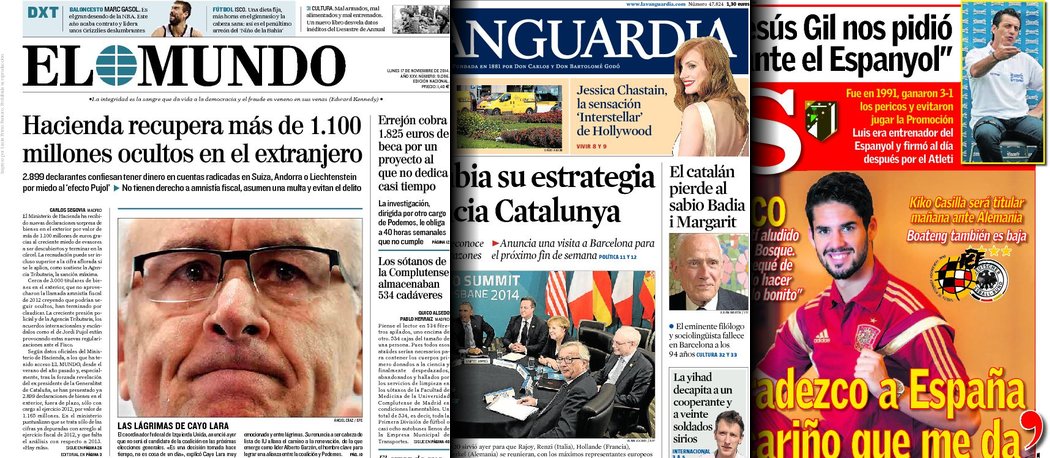 Portadas de los diarios El Mundo, El País, ABC, La Razón, La Vanguardia, El Periódico, Cinco Días, El Economista, Expansión, Marca, As, Mundo Deportivo y Sport.