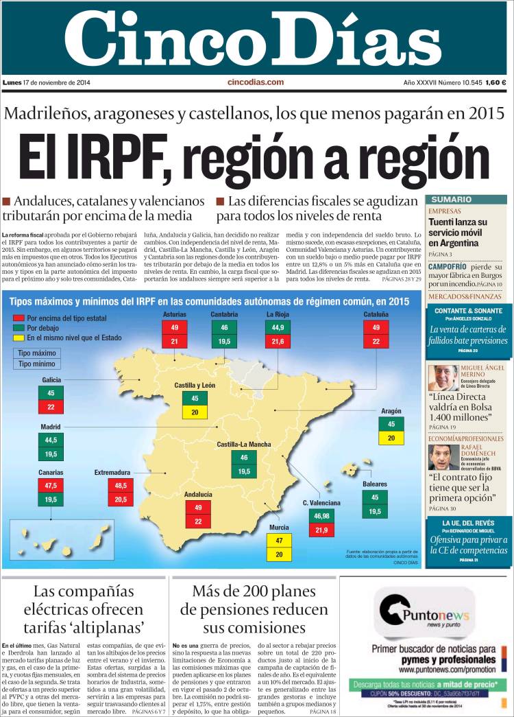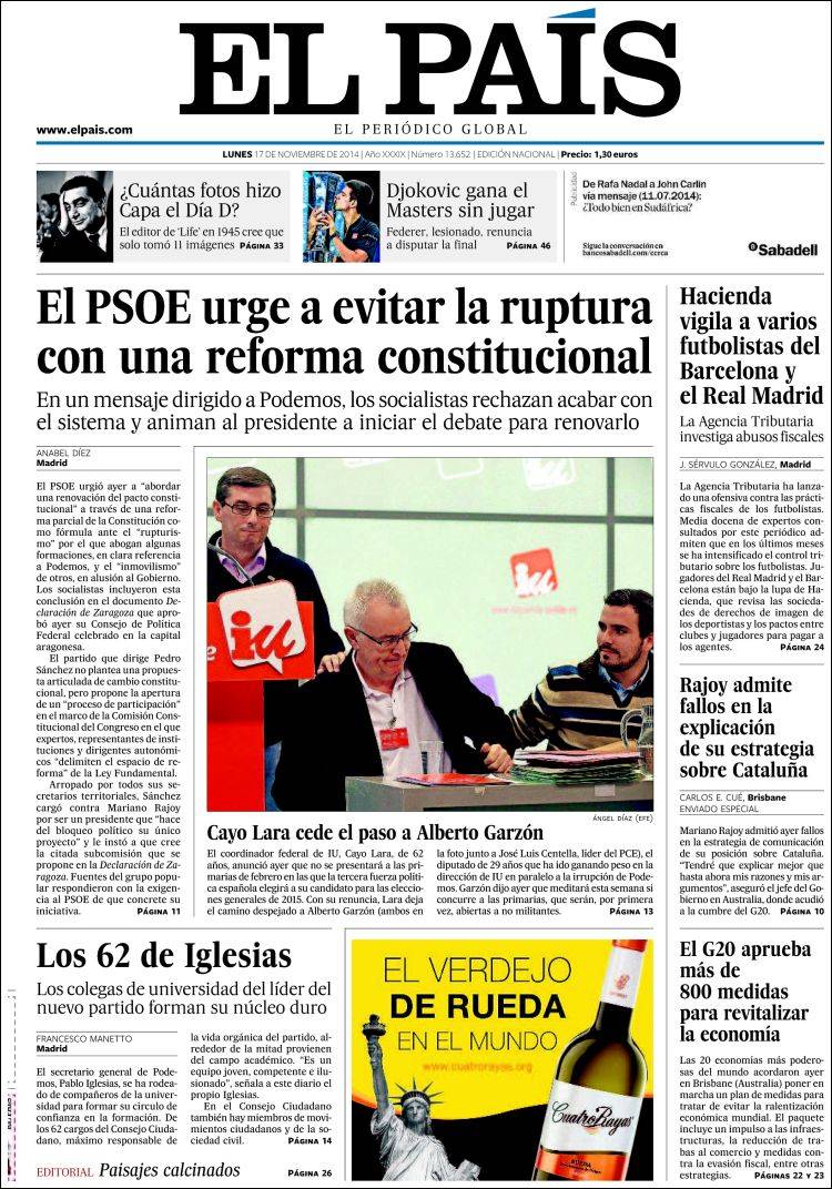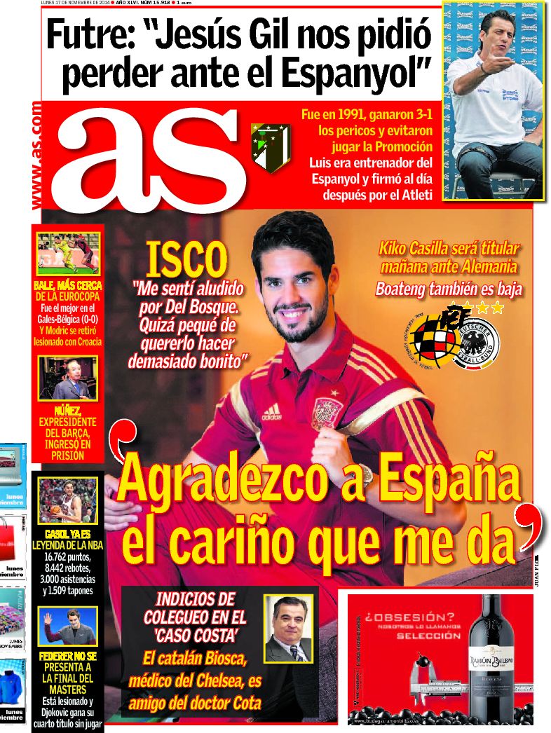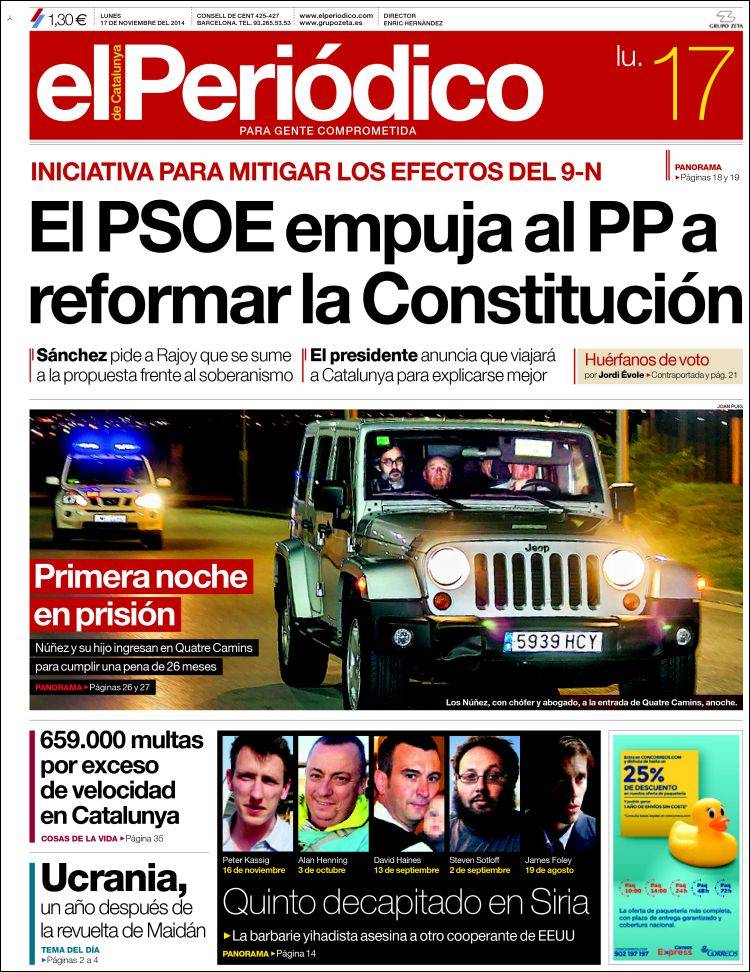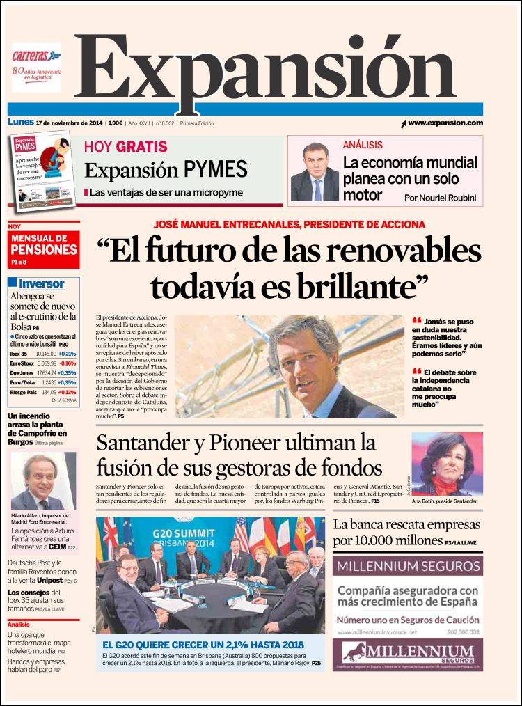 Portadas de los diarios El Mundo, El País, ABC, La Razón, La Vanguardia, El Periódico, Cinco Días, El Economista, Expansión, Marca, As, Mundo Deportivo y Sport.