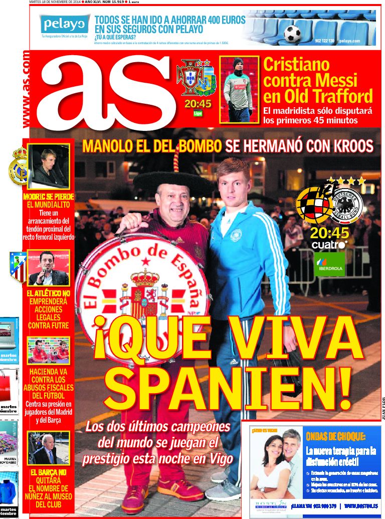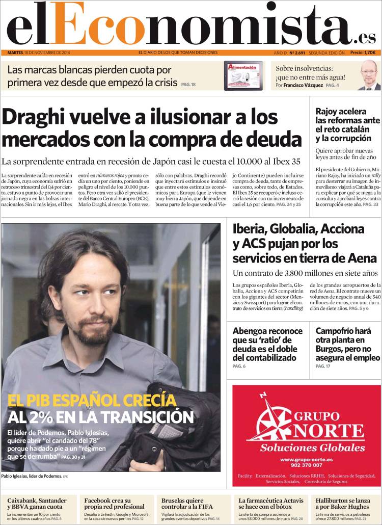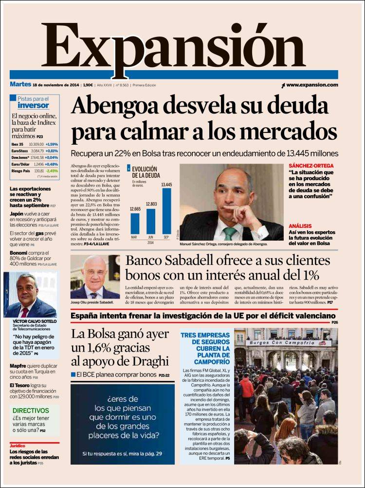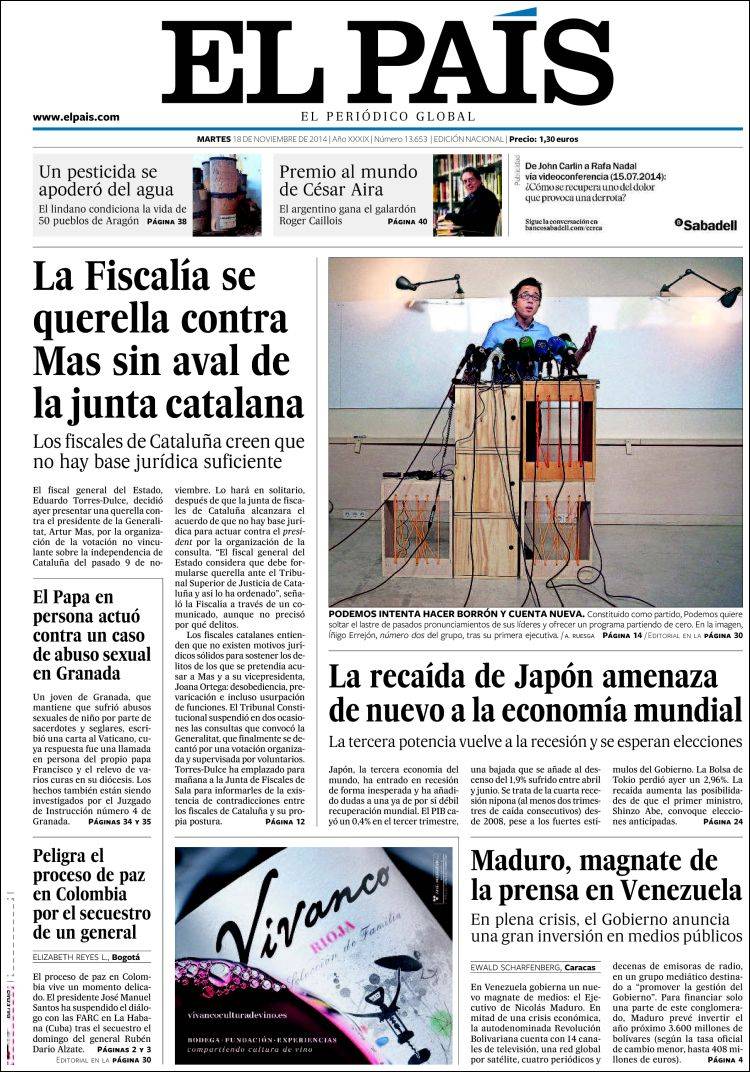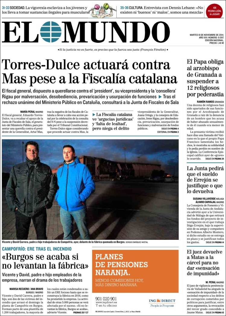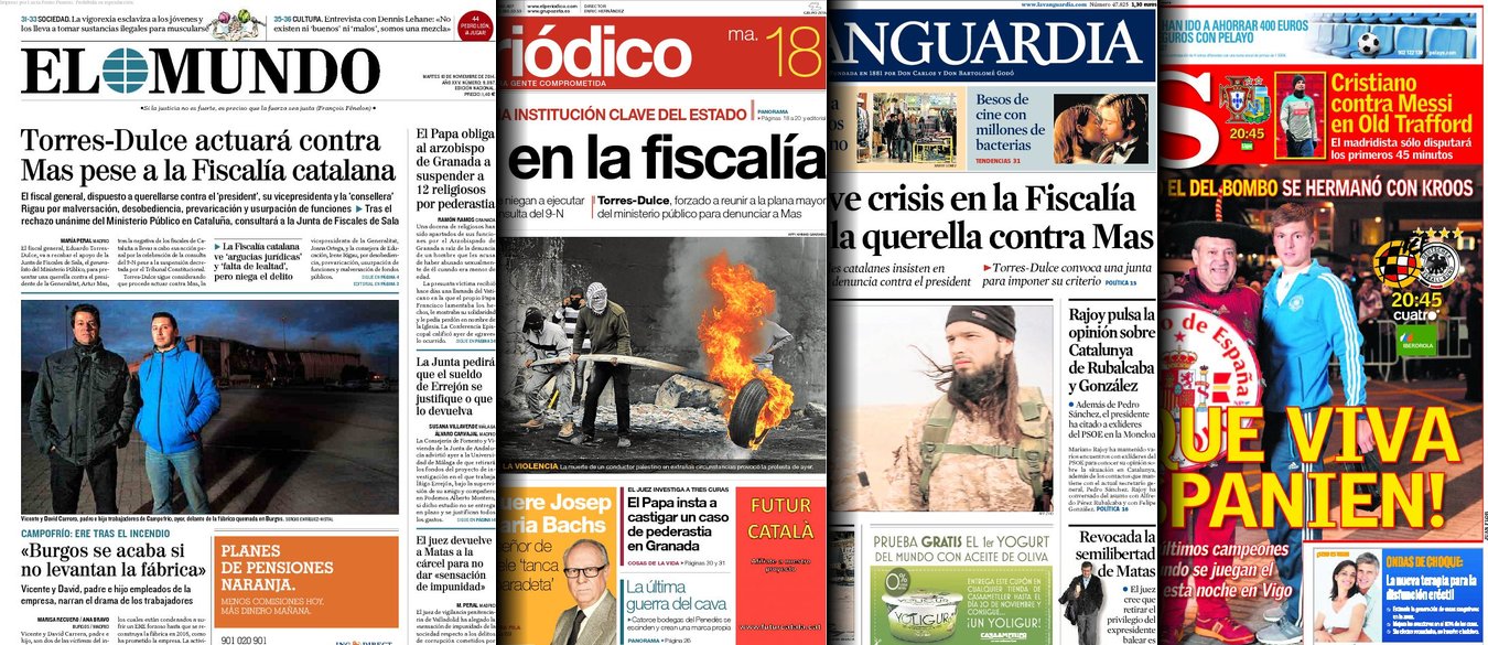 Portadas de los diarios El Mundo, El País, ABC, La Razón, La Vanguardia, El Periódico, Cinco Días, El Economista, Expansión, Marca, As, Mundo Deportivo y Sport.