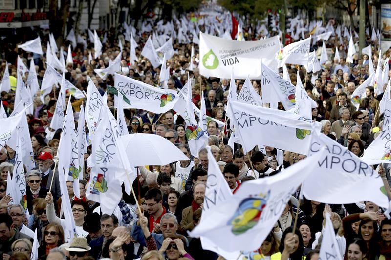Este sábado se ha desarrollado en Madrid una marcha bajo el lema 'Cada vida importa' en la que se exigía al Gobierno de Rajoy que retomase la reforma de la ley del aborto que decidió guardar en un cajón.