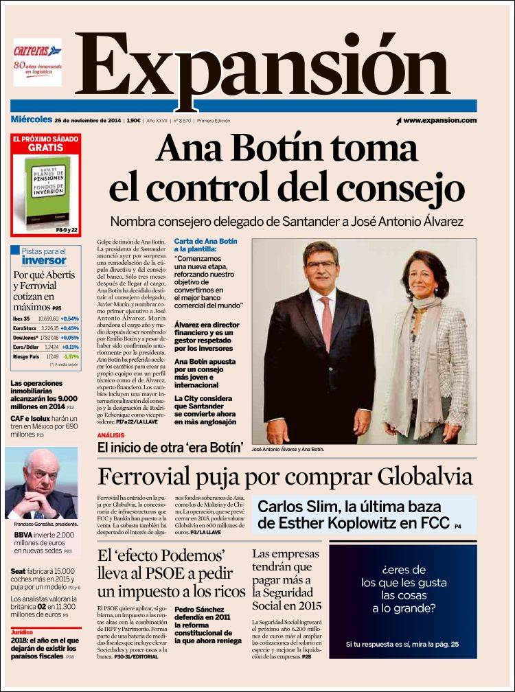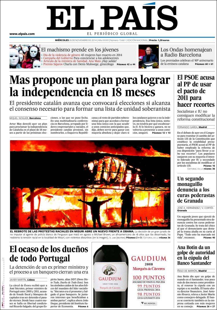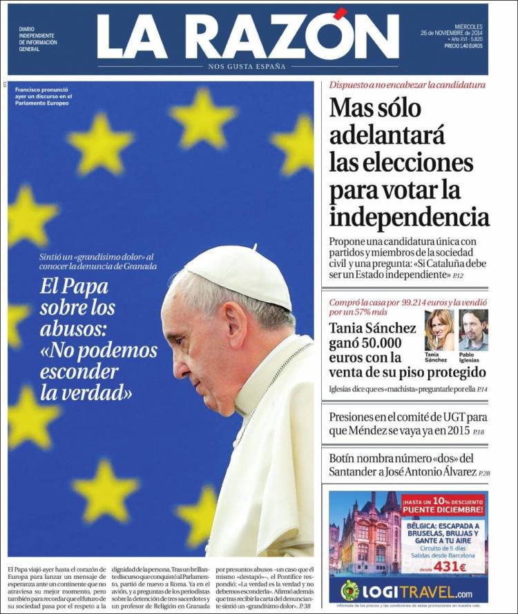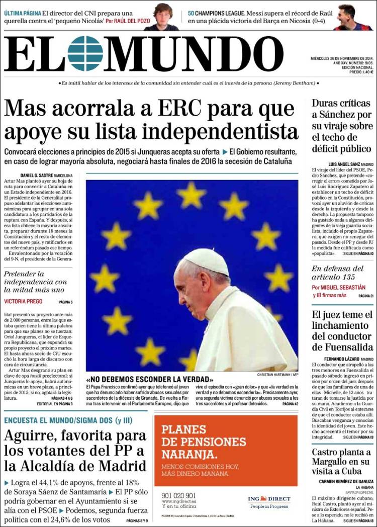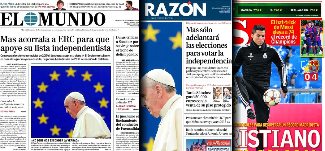 Portadas de los diarios El Mundo, El País, ABC, La Razón, La Vanguardia, El Periódico, Cinco Días, El Economista, Expansión, Marca, As, Mundo Deportivo y Sport.