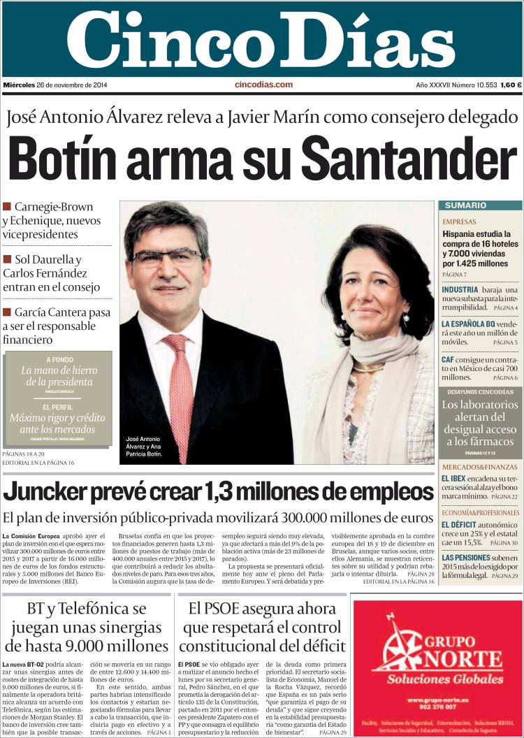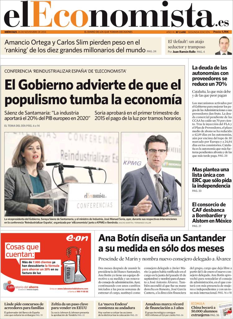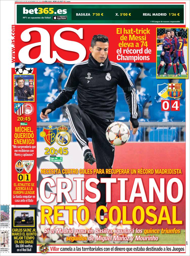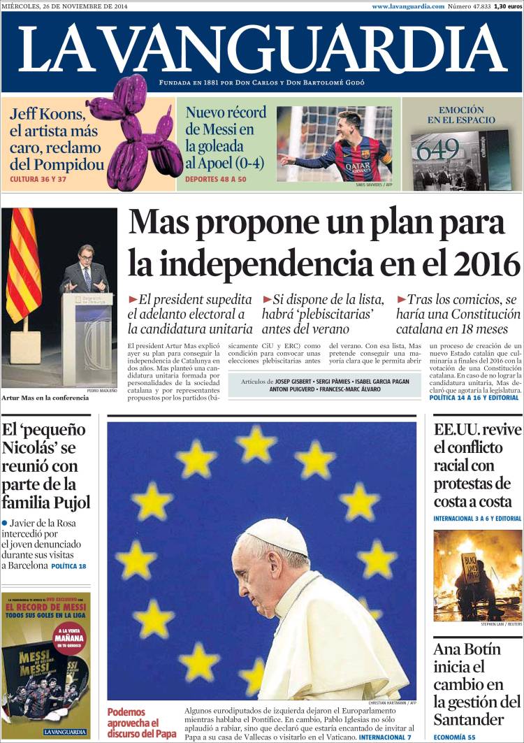 Portadas de los diarios El Mundo, El País, ABC, La Razón, La Vanguardia, El Periódico, Cinco Días, El Economista, Expansión, Marca, As, Mundo Deportivo y Sport.