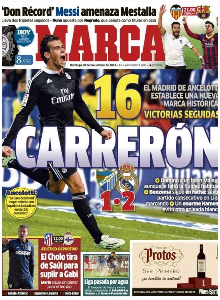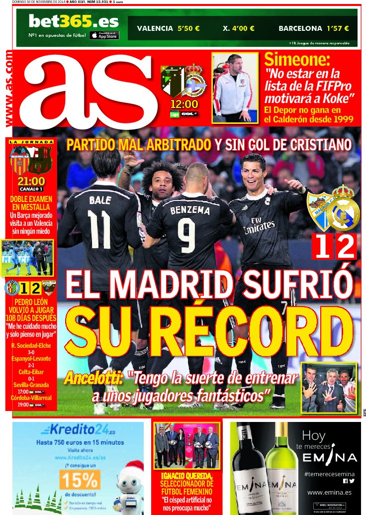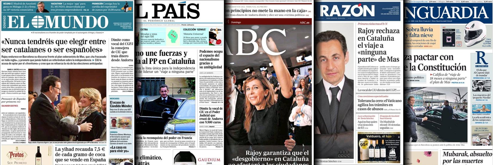 Portadas de los diarios El Mundo, El País, ABC, La Razón, La Vanguardia, El Periódico, Marca, As, Mundo Deportivo y Sport.