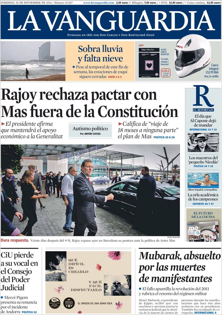 "Rajoy rechaza pactar con Mas fuera de la Constitución"