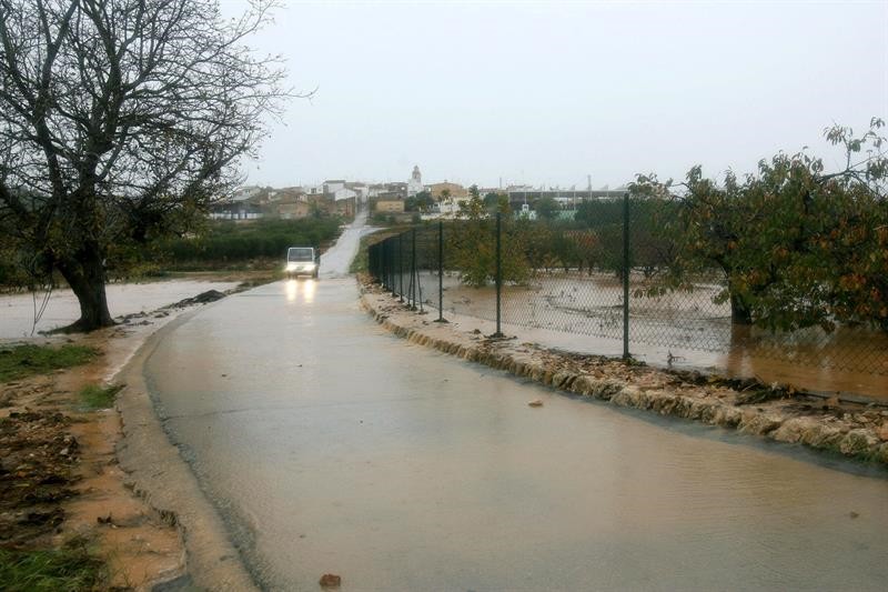 Campos inundados en la localidad de Freginals a causa del temporal que azota Cataluña y que ha obligado a cortar al tráfico numerosas carreteras