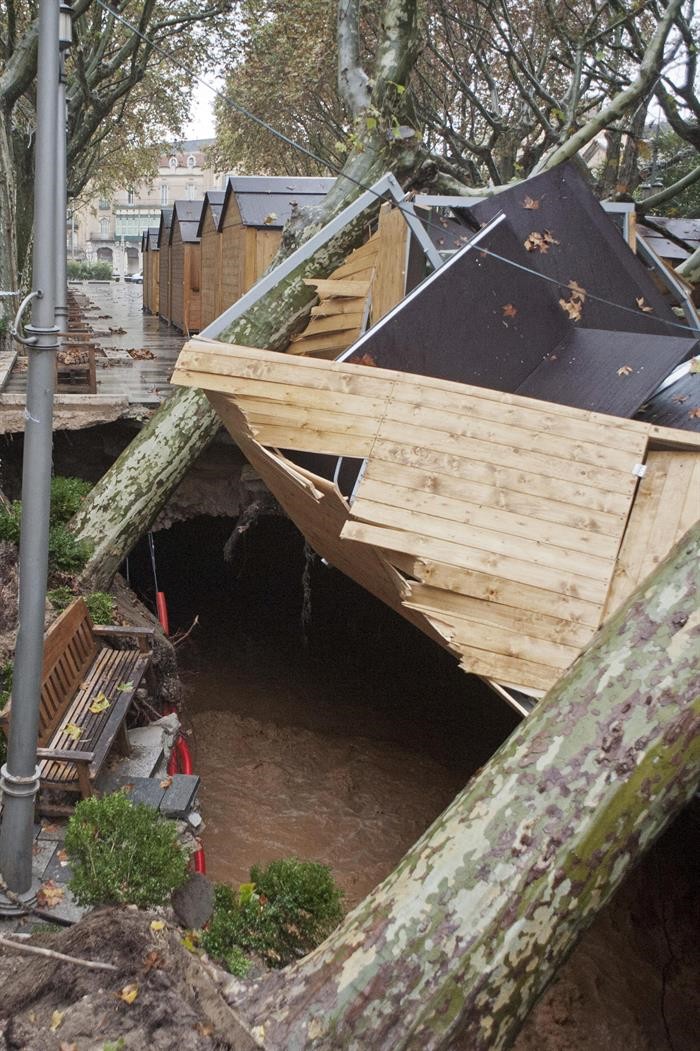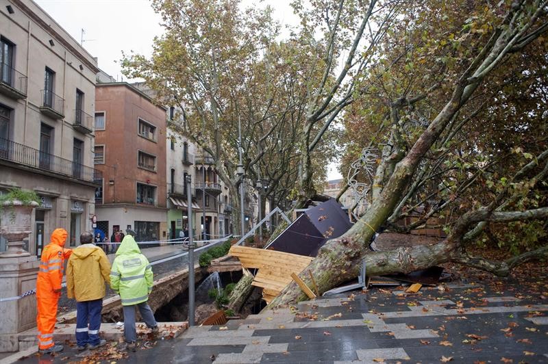 Las lluvias en Figueras (Gerona) han provocado un socavón de cerca de diez metros bajo uno de los tramos de la Rambla de este municipio