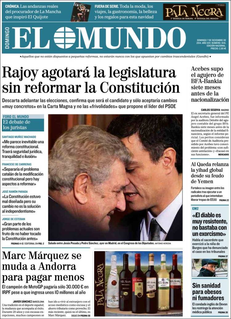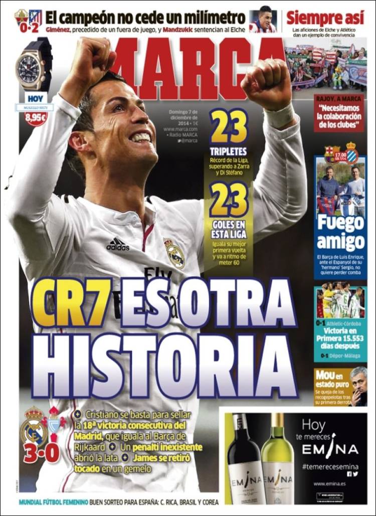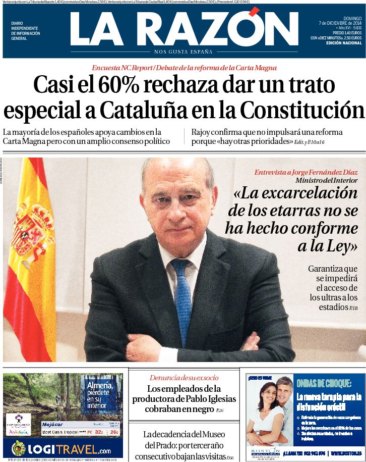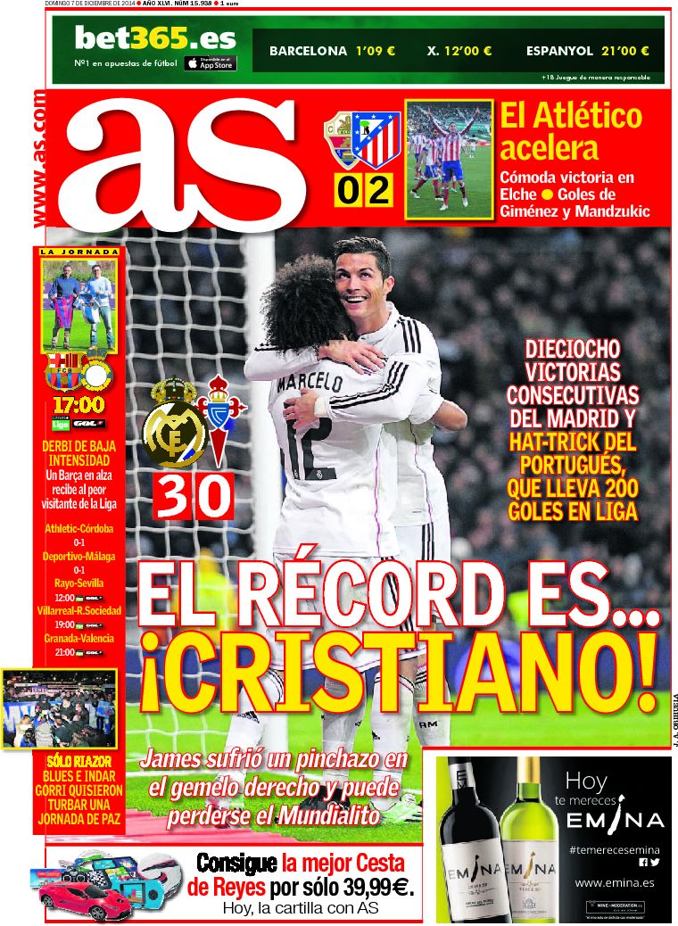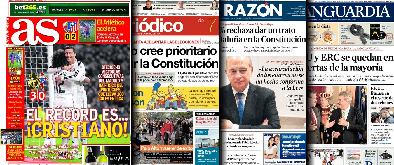 Portadas de los diarios ABC, La Razón, As, El Periódico y La Vanguardia.